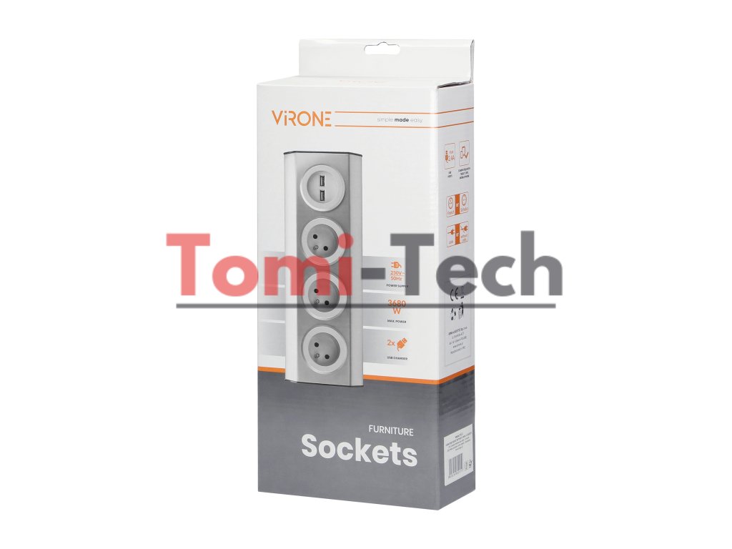 Sada troch uzemnených zásuviek s duálnym USB portom, ideálna na inštaláciu do skriniek, vitrín a výstavných skriniek. Jednoduchá a rýchla inštalácia pomocou suchého zipsu uľahčuje inštaláciu každému používateľovi a zaisťuje stabilnú montáž na povrch bez nutnosti vŕtania alebo skrutiek. Kryt z nehrdzavejúcej ocele je vysoko odolný a elegantný. Sada zásuviek obsahuje 1,5 m kábel.Dodatočné parametre