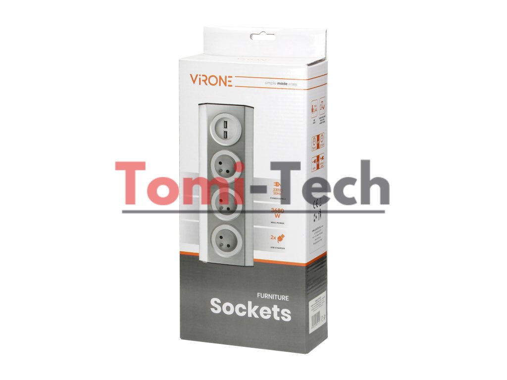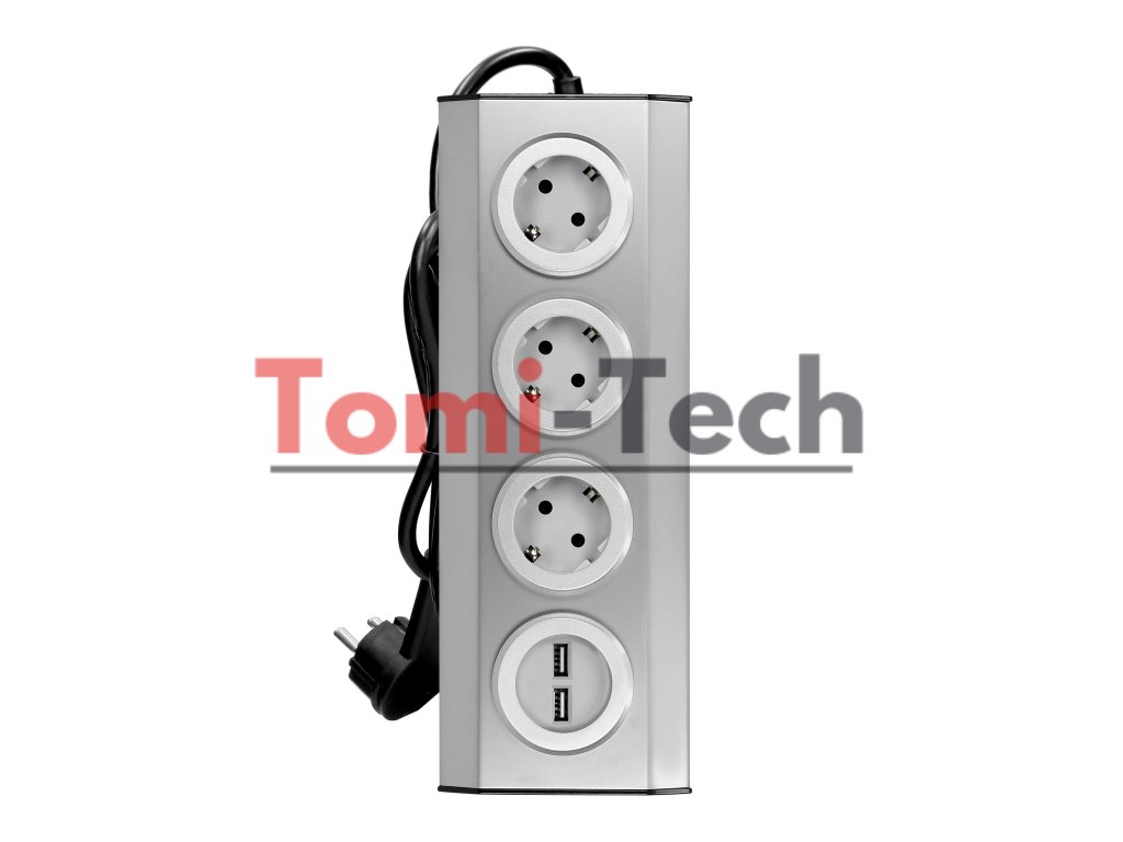 Táto sada troch zásuviek s uzemnením Schuko a dvoma USB portami je ideálna do kuchýň a kancelárií, a to ako na rovných povrchoch, tak aj v rohoch. Jednoduchá a rýchla inštalácia pomocou suchého zipsu uľahčuje inštaláciu každému používateľovi a zaisťuje stabilné upevnenie k povrchom bez nutnosti vŕtania alebo skrutiek. Puzdro z nehrdzavejúcej ocele je vysoko odolné a elegantné. Sada zásuviek obsahuje 1,5 m kábel.Dodatočné parametre