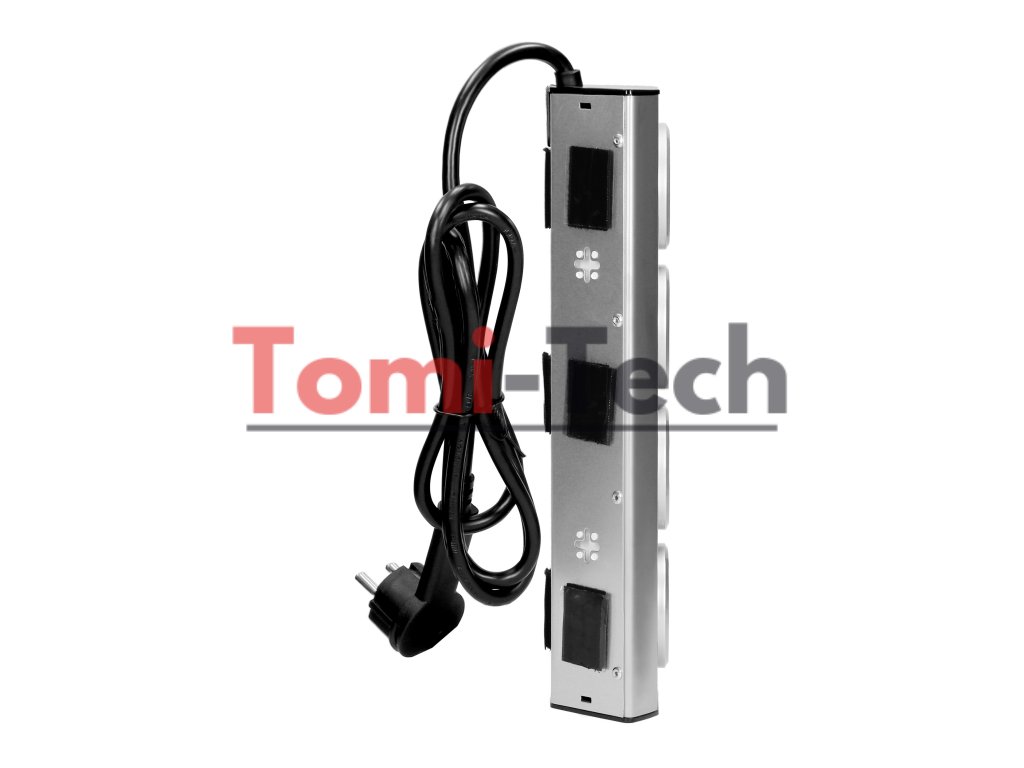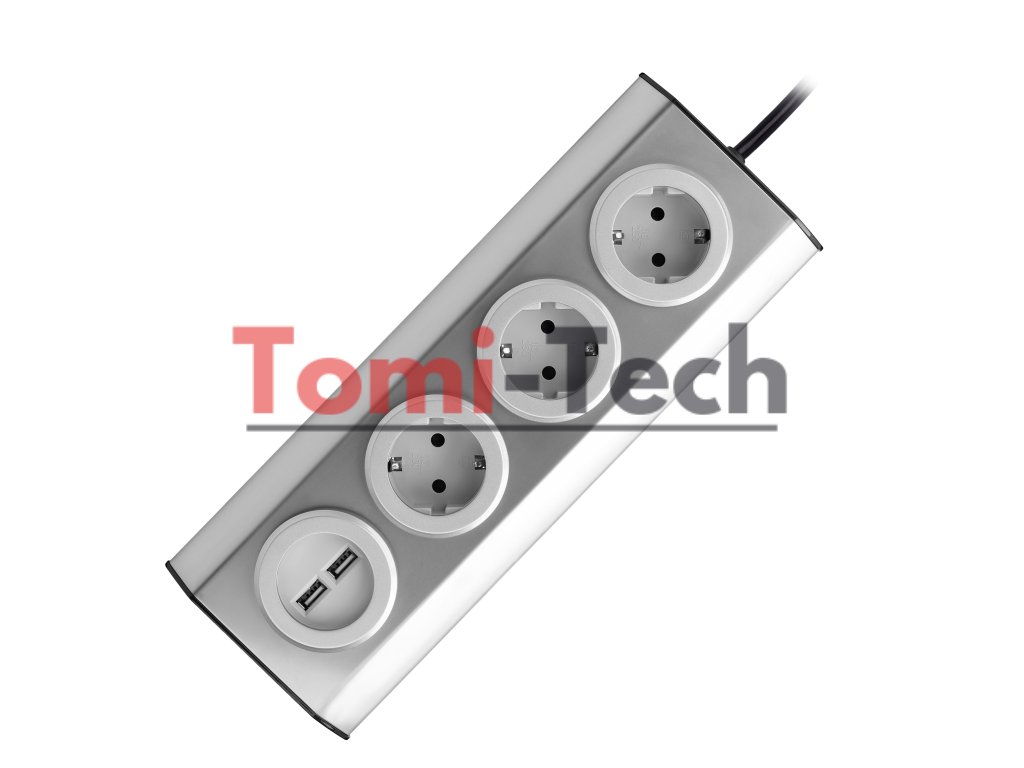 Nábytok, kuchynská zásuvka s USB nabíjačkou, upevnenie na suchý zips s 1,5m káblom - 3x2P+Z schuko, 2xUSB, INOX s 1,5m káblom.