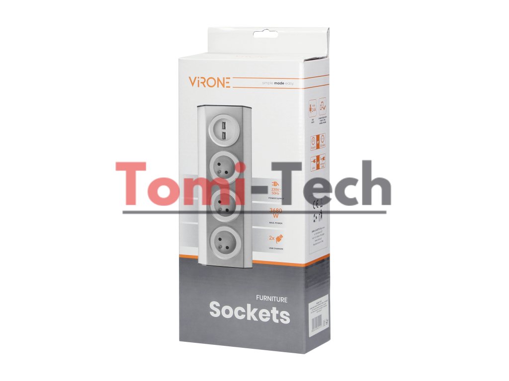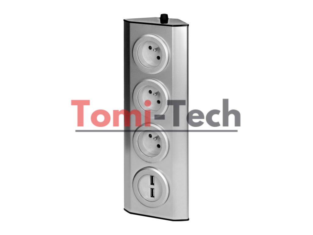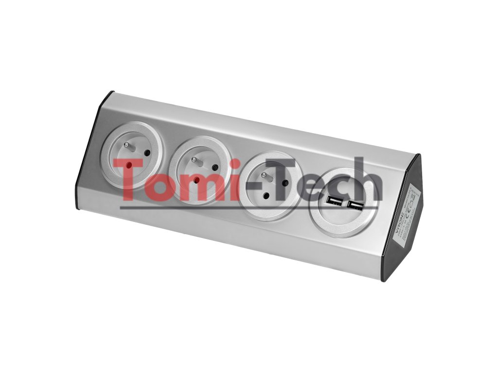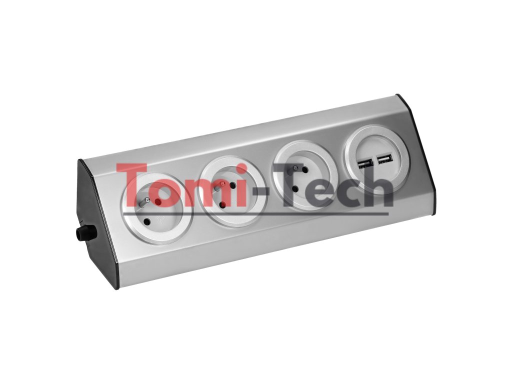 Nábytok, kuchynská zásuvka upevnená suchým zipsom, s USB nabíjačkou - 3x2P+Z, 2xUSB, INOX.