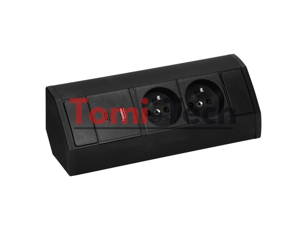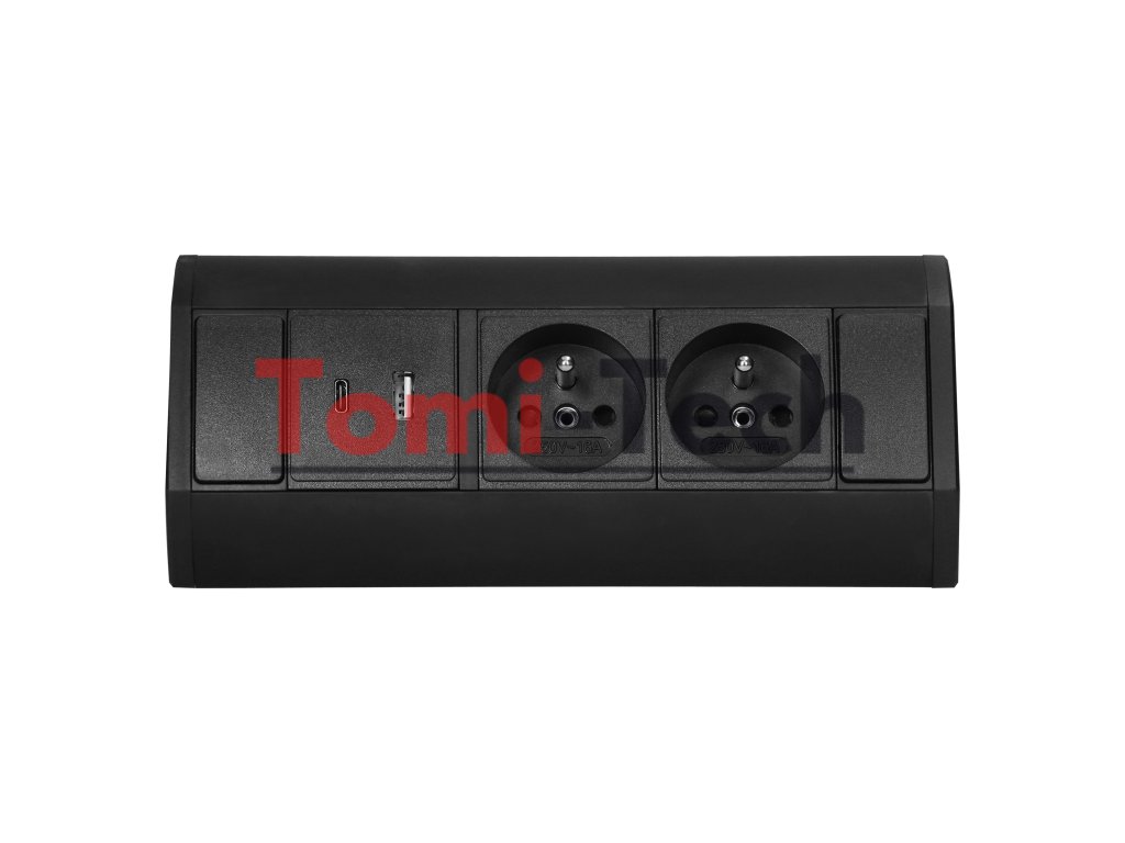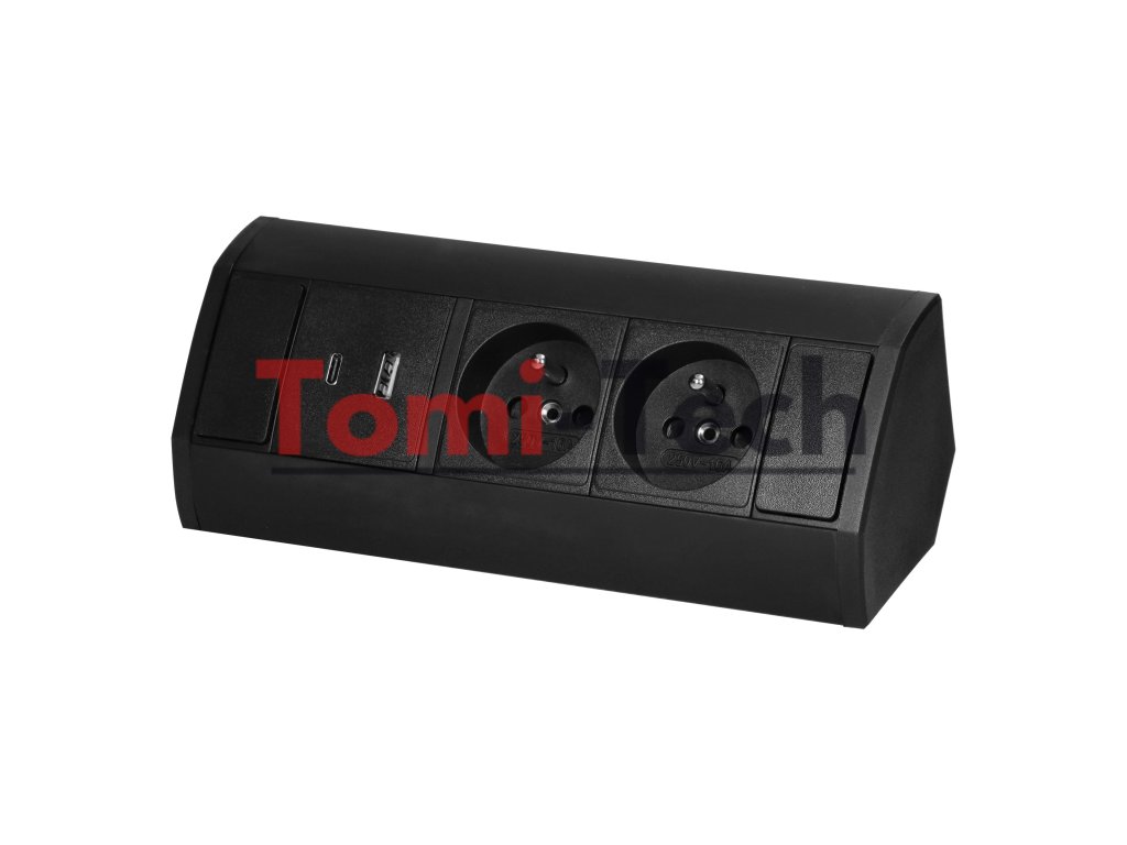 Nábytková zásuvka 2x2P+Z, 2xUSB (typ A+C; 2,4A), čiernaDodatočné parametre