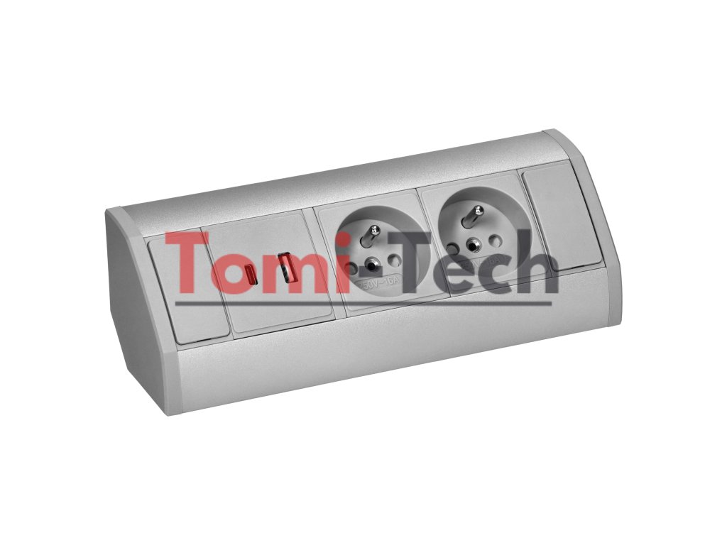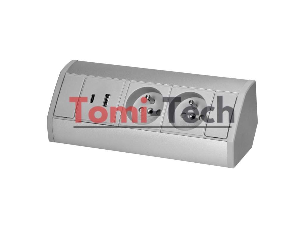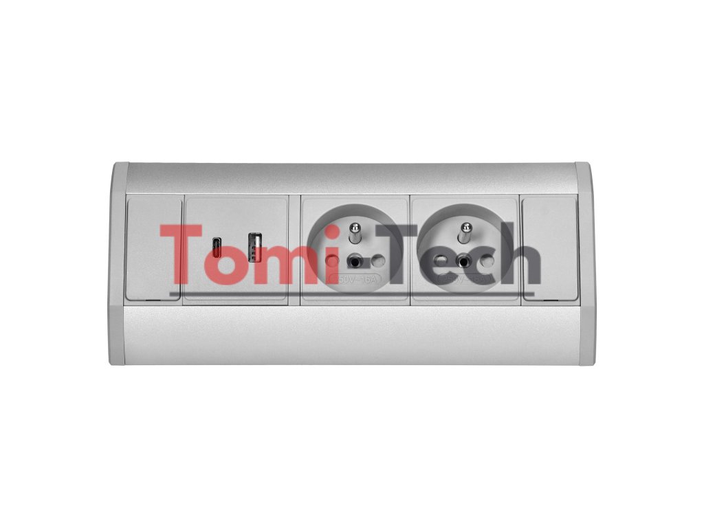 Nábytková zásuvka 2x2P+Z, 2xUSB (typ A+C; 2,4A), sivo-striebornáDodatočné parametre