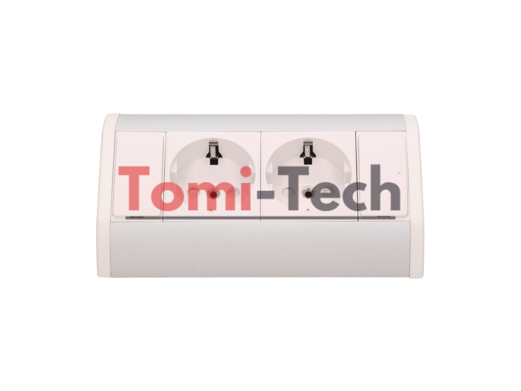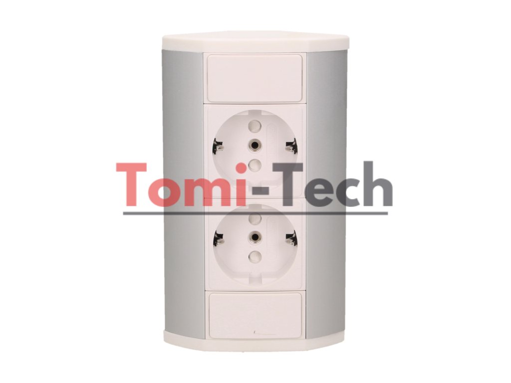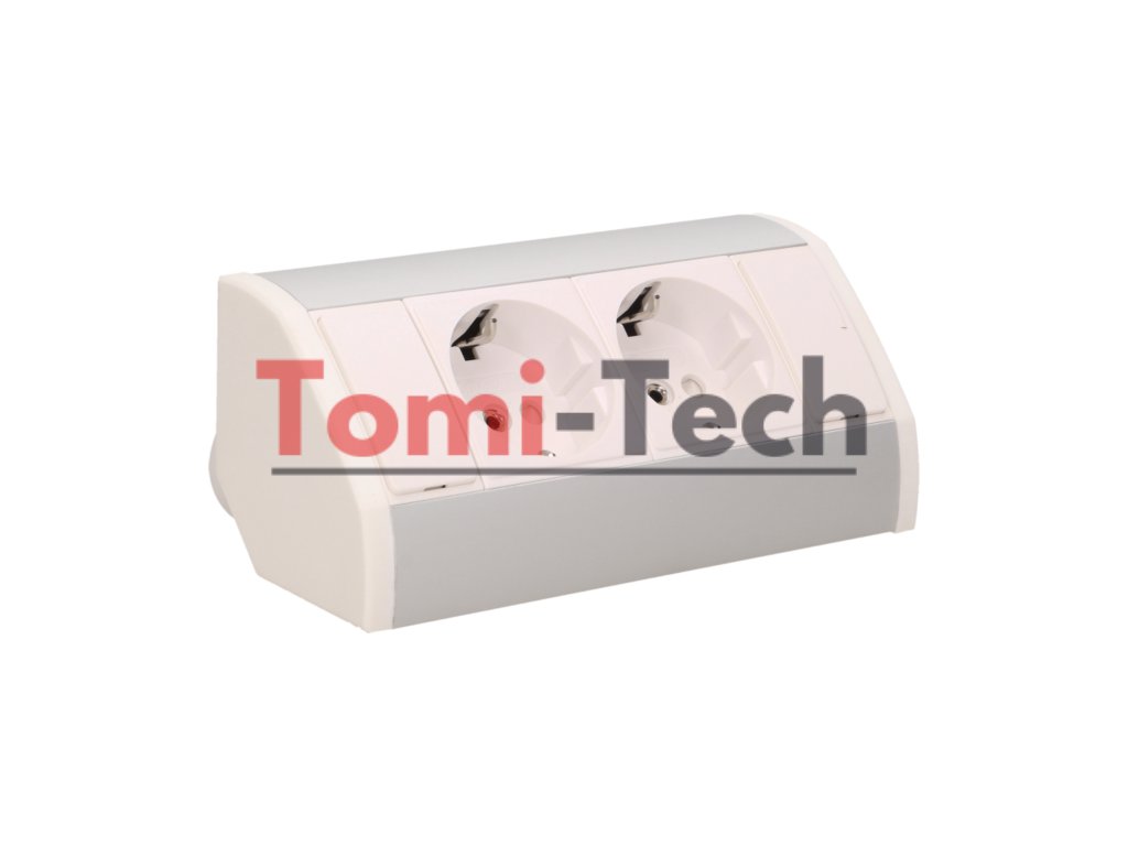 Nábytková zásuvka 2x2P+Z, schuko, bielo-strieborná
