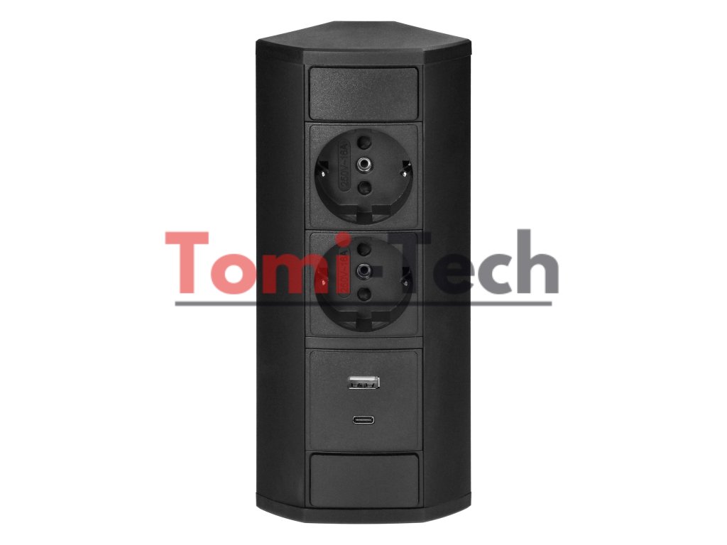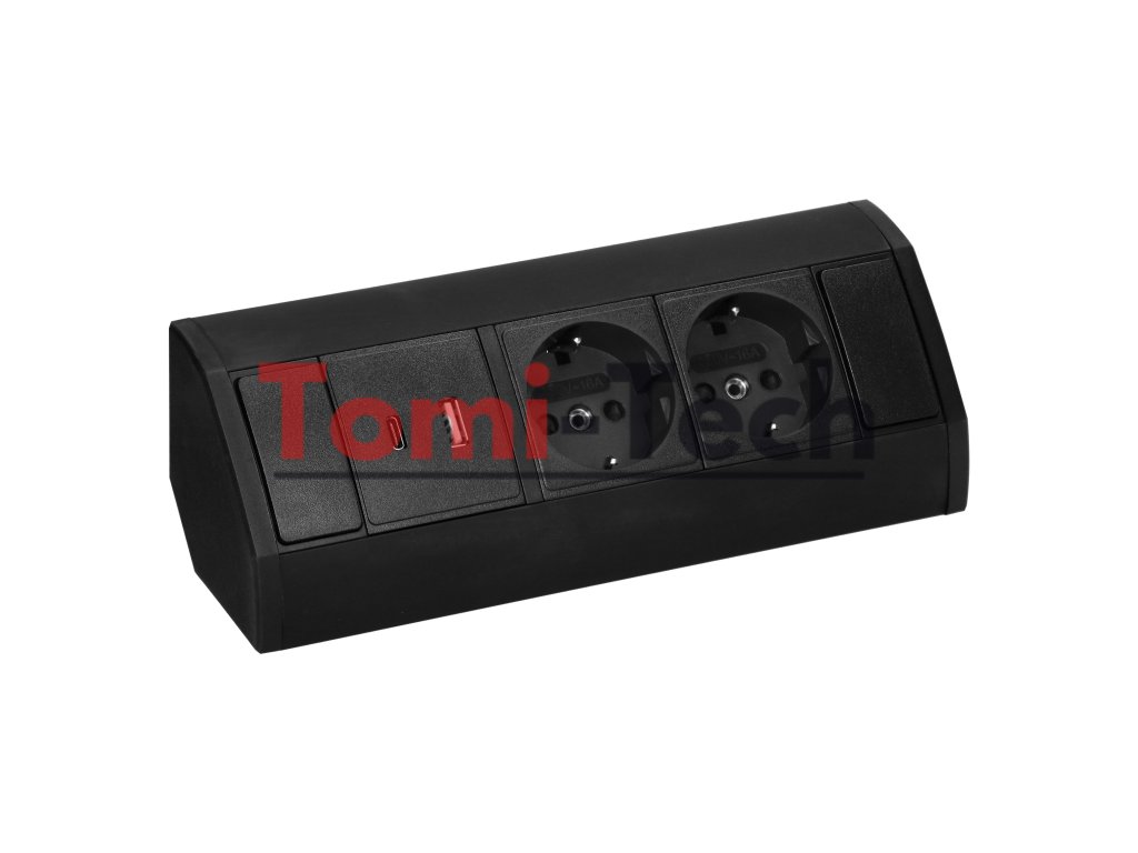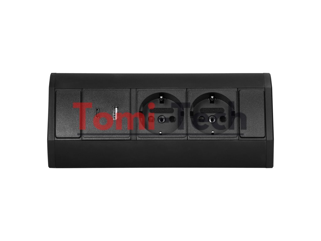 Nábytková zásuvka 2x2P+Z (Schuko), 2xUSB (typ A+C; 2,4A), čierna