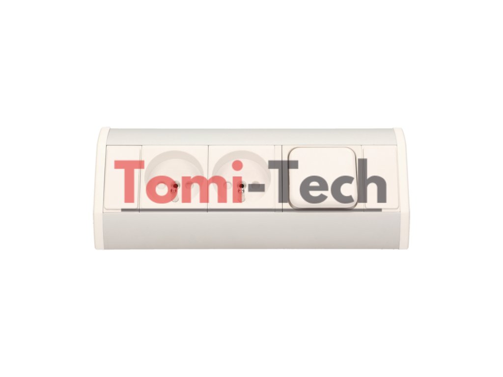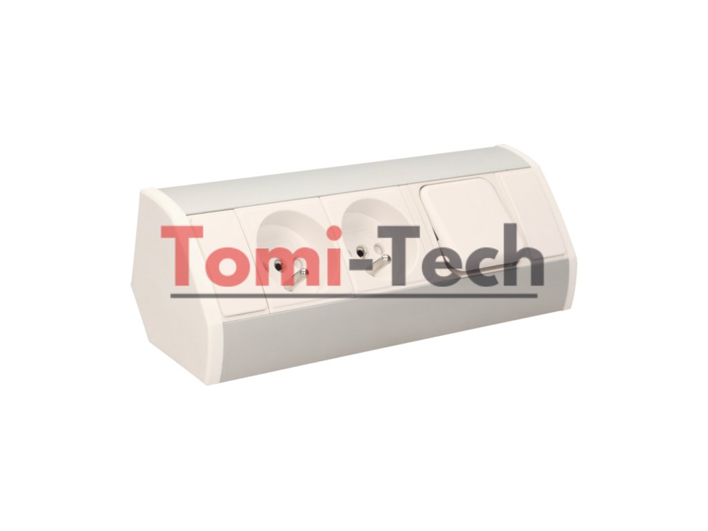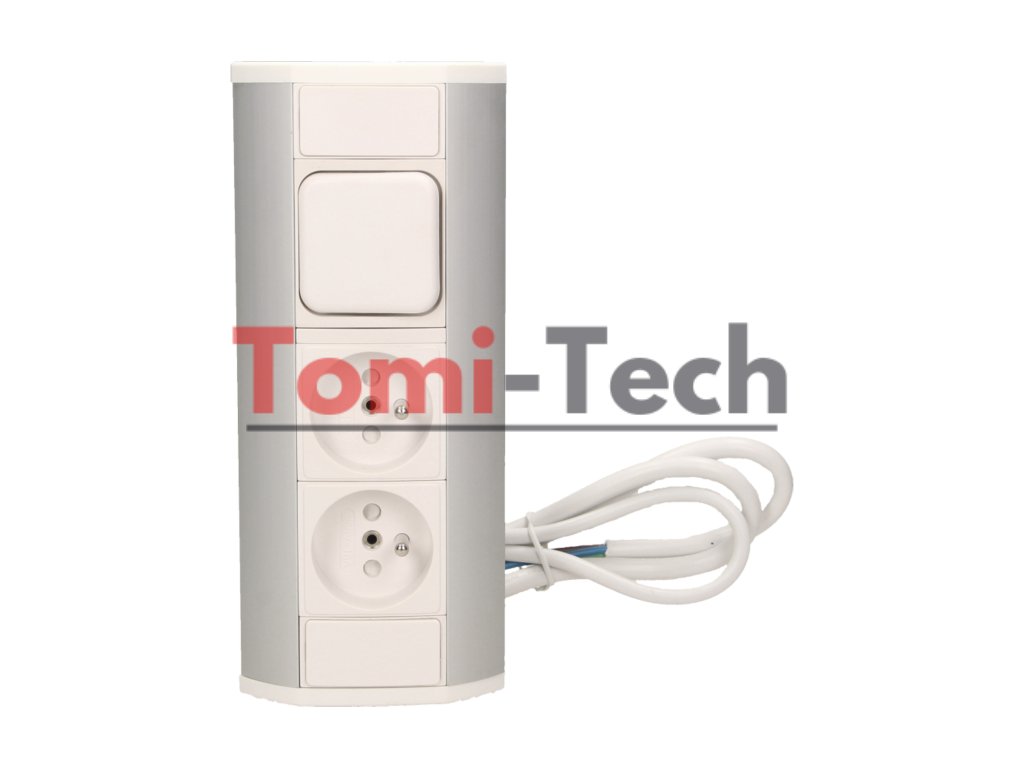 Nábytková zásuvka 2x2P+Z s vypínačom, biela a strieborná