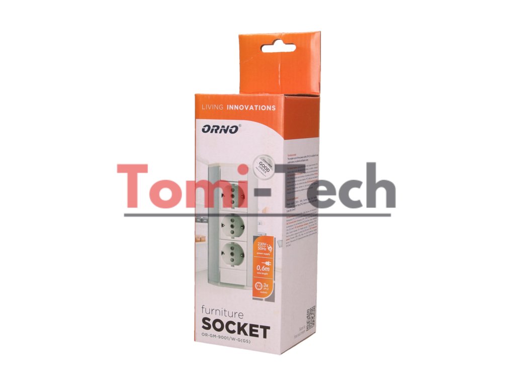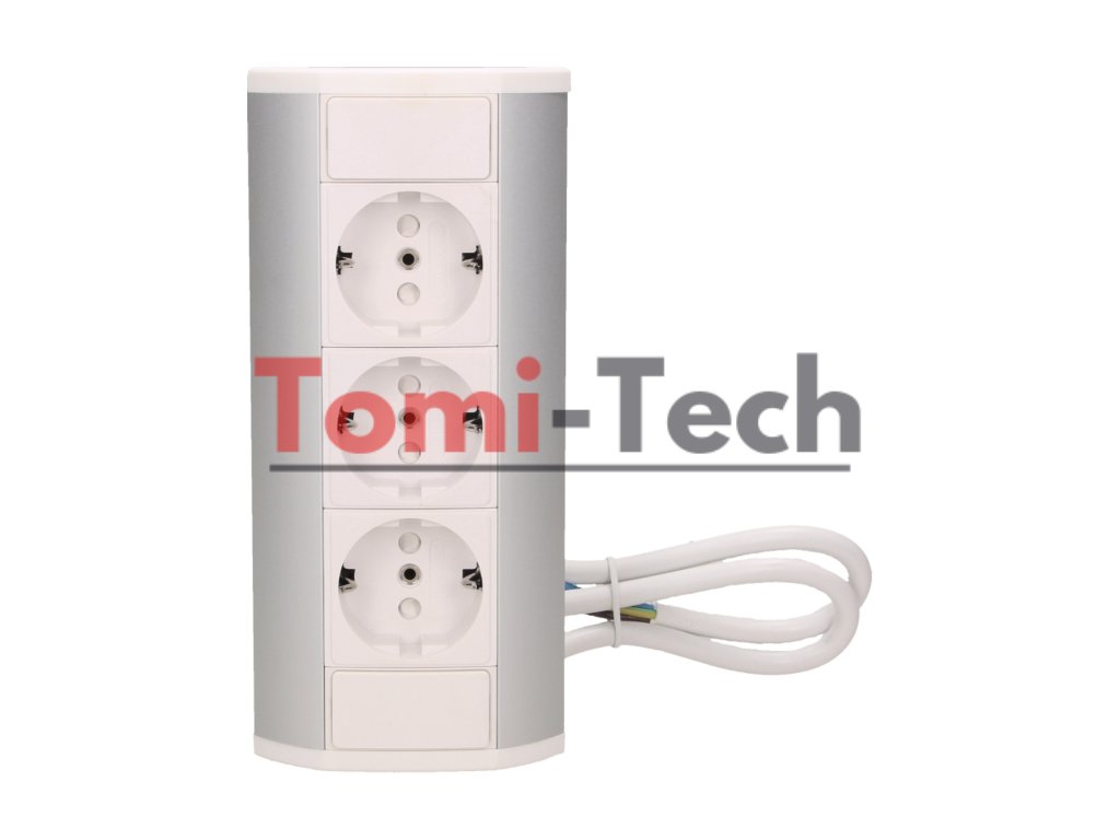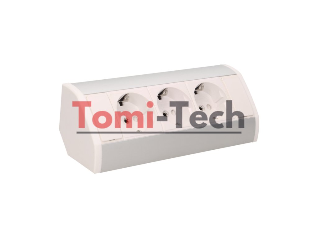 Nábytková zásuvka 3x2P+Z, schuko, bielo-strieborná