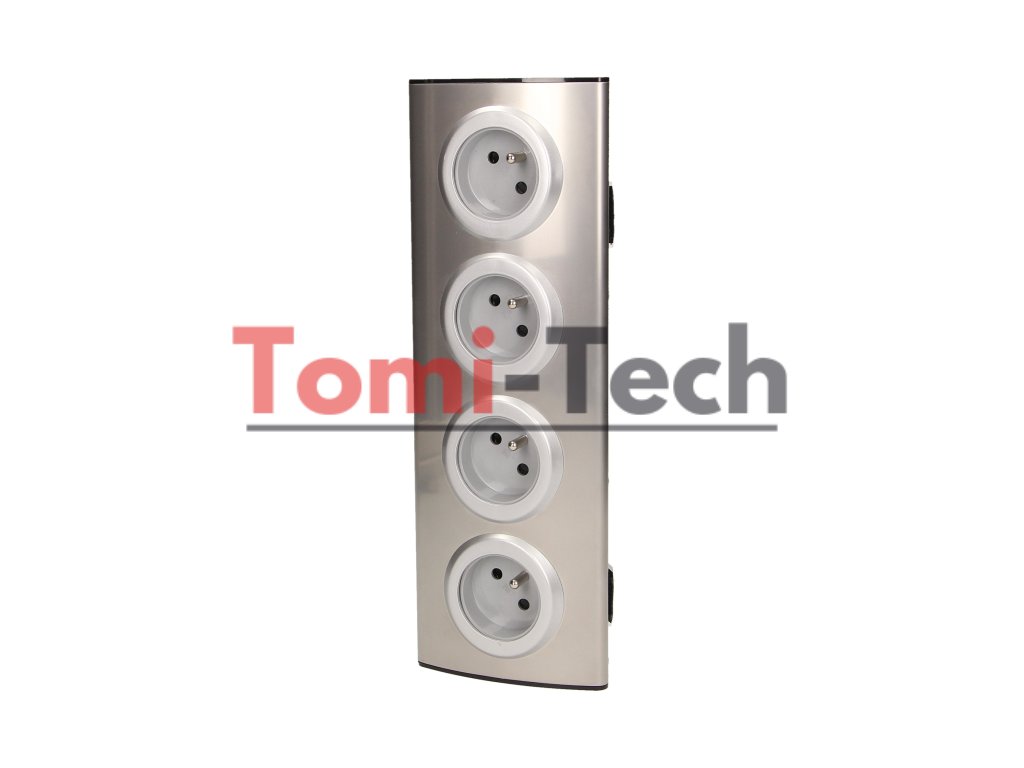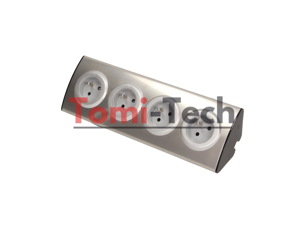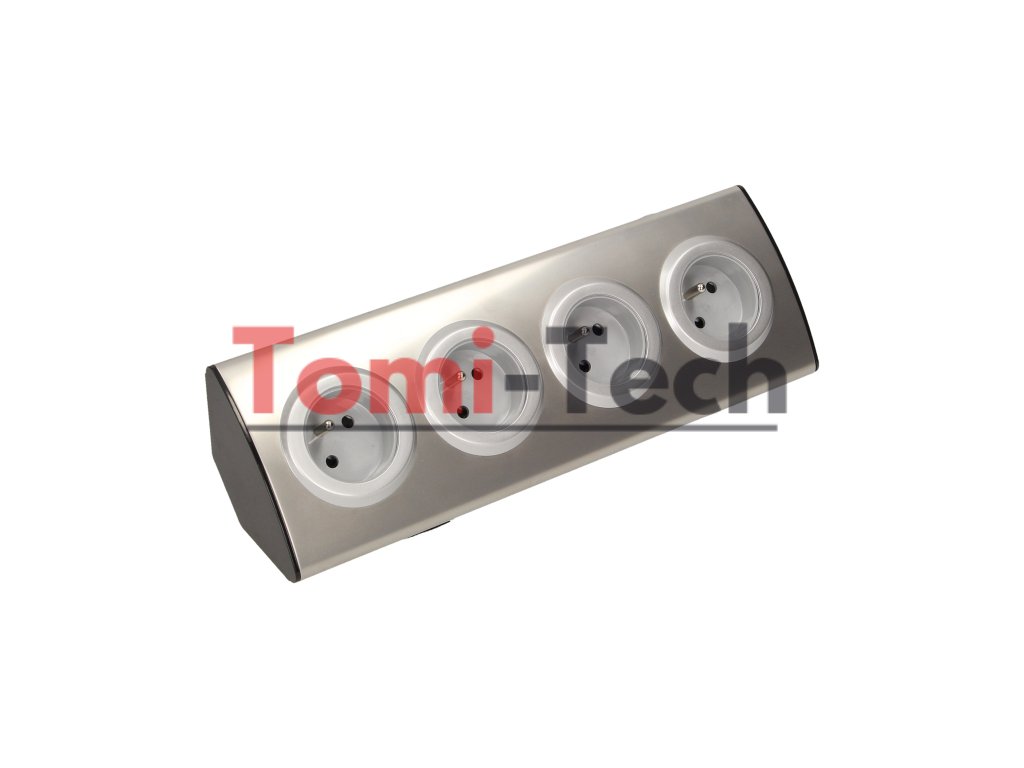 Zásuvka do kuchynského nábytku 4x2P+Z, upevnenie na suchý zips, INOX