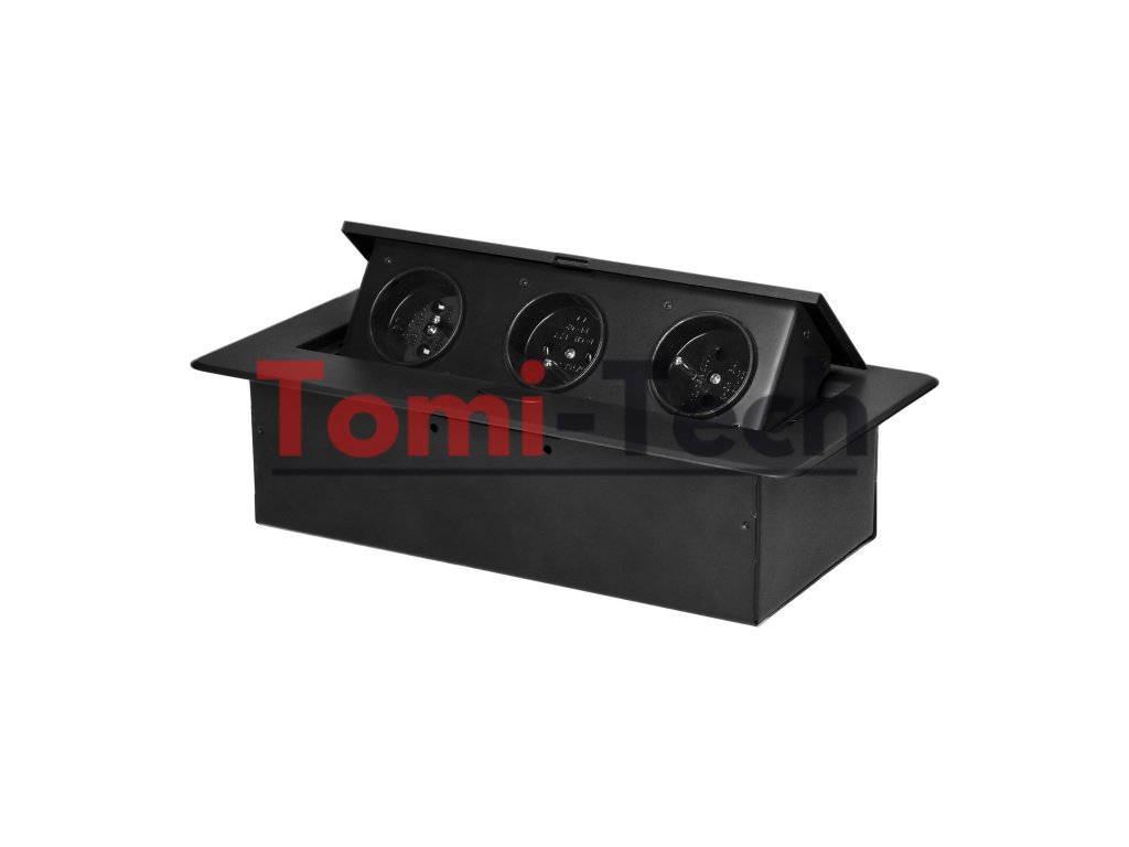 Nábytková zásuvka zapustená do pracovnej dosky s plochým frézovaným okrajom, 3x2P+Z, čiernaDodatočné parametre