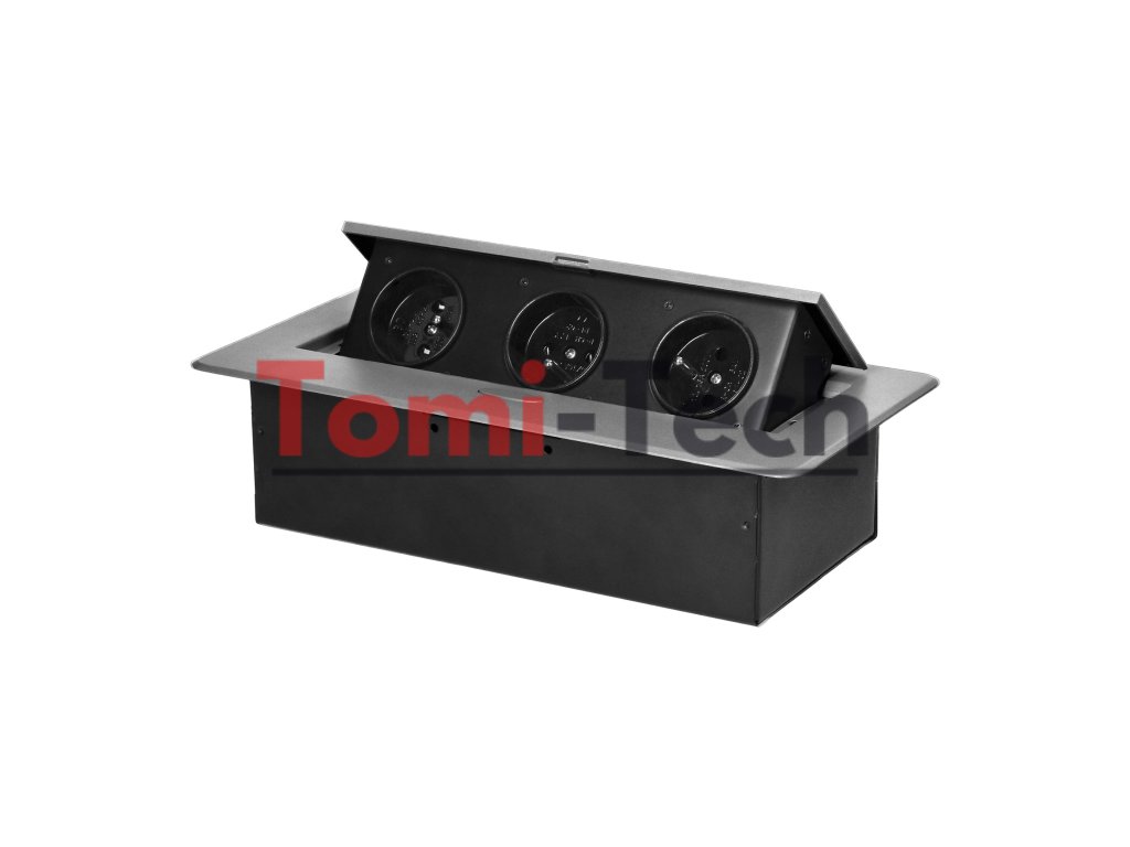 Nábytková zásuvka zapustená do pracovnej dosky s plochým frézovaným okrajom, 3x2P+Z, striebornáDodatočné parametre