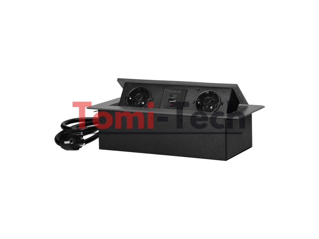 Nábytková zásuvka zapustená do kuchynskej linky s plochým frézovaným okrajom, USB nabíjačka a 1,5 m kábel, 2x2P+Z (Schuko), 2xUSB (typ A+C; 3,6A), grafitDodatočné parametre