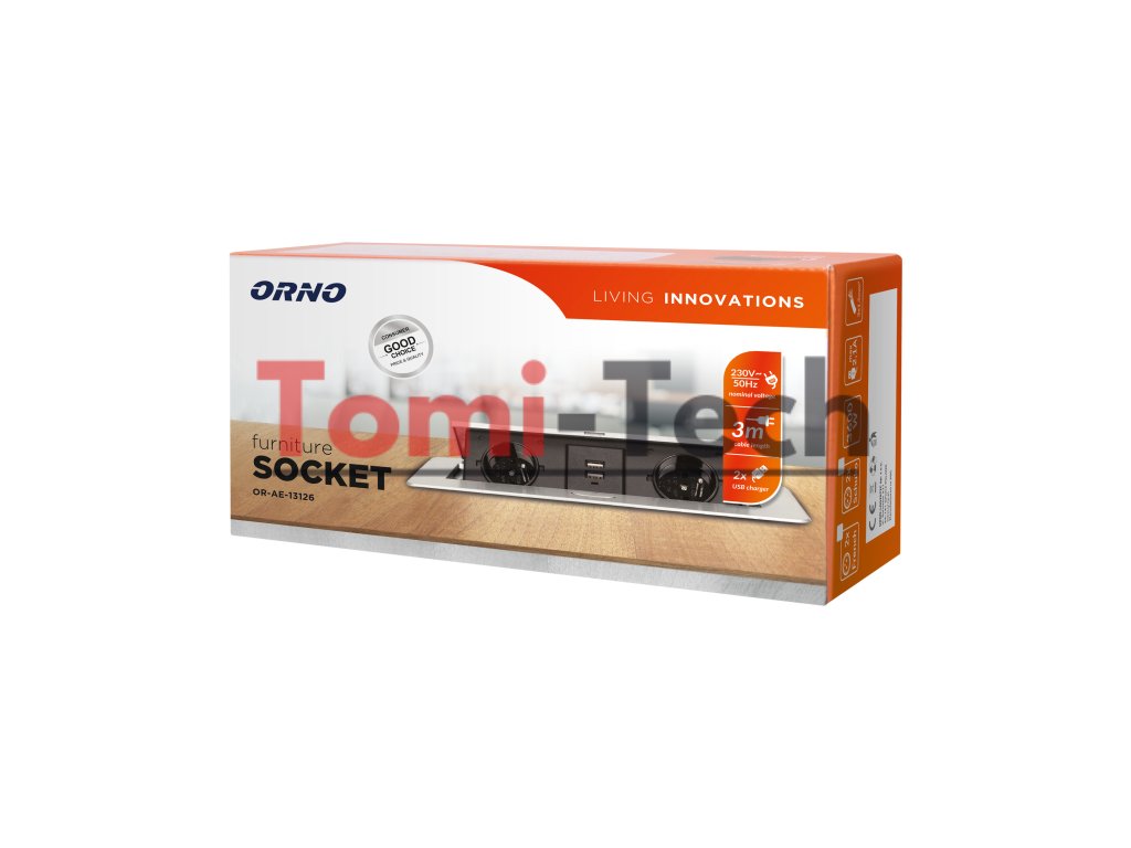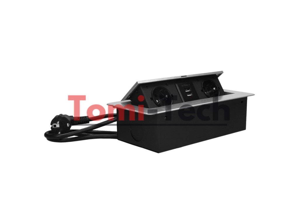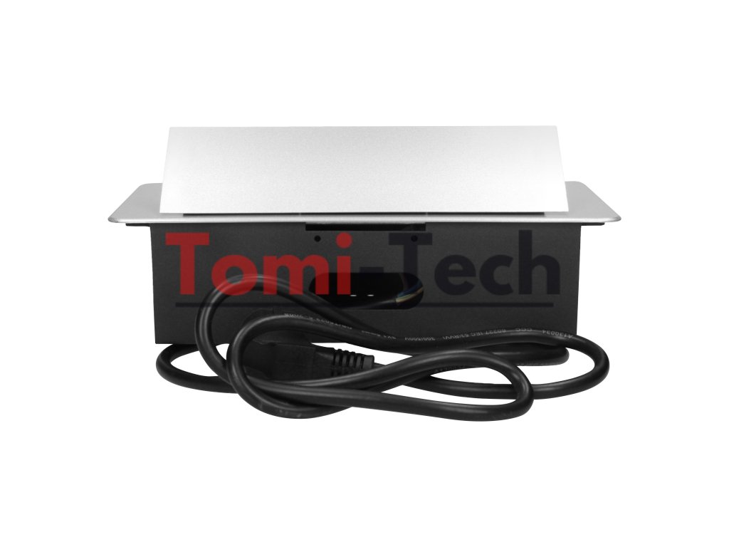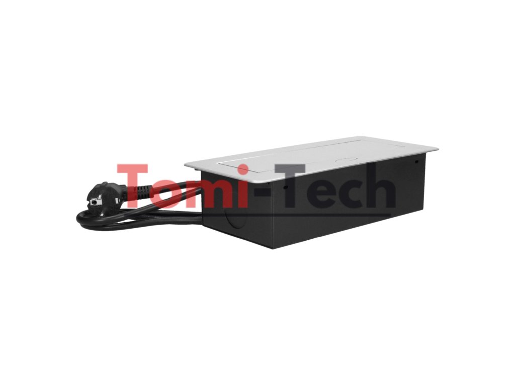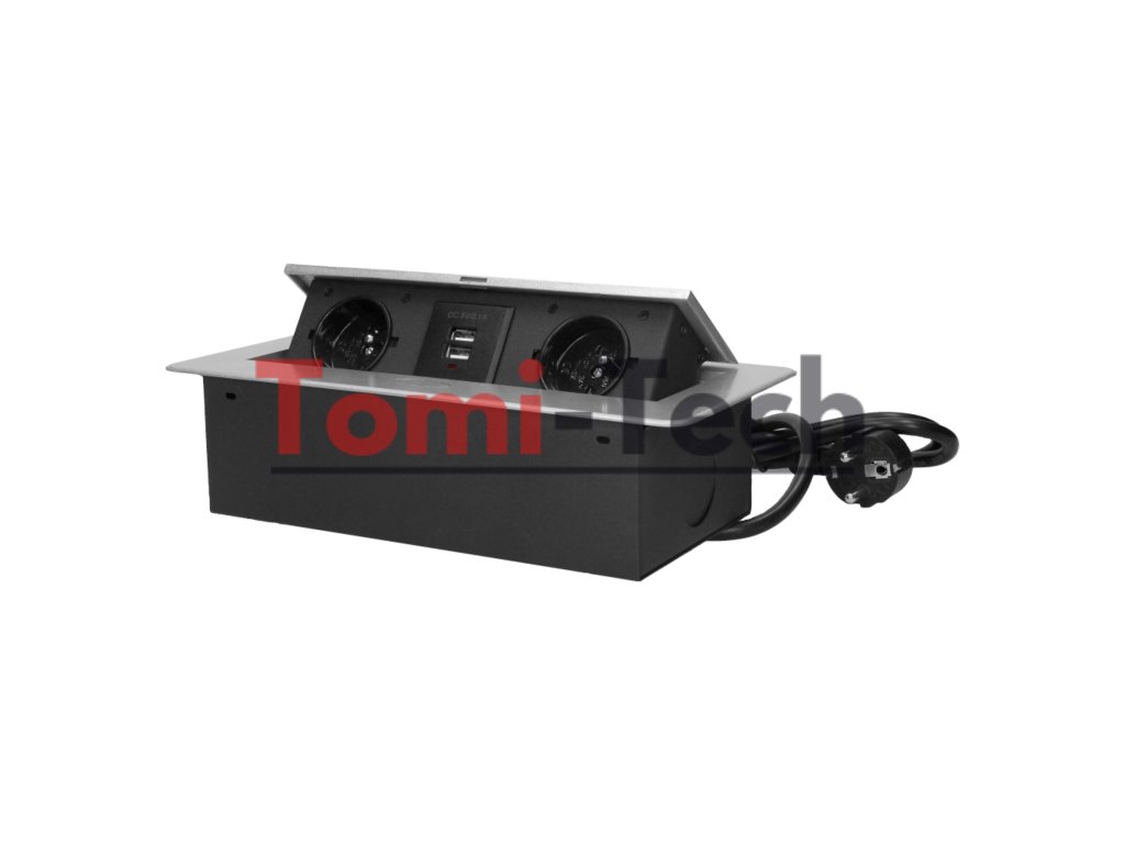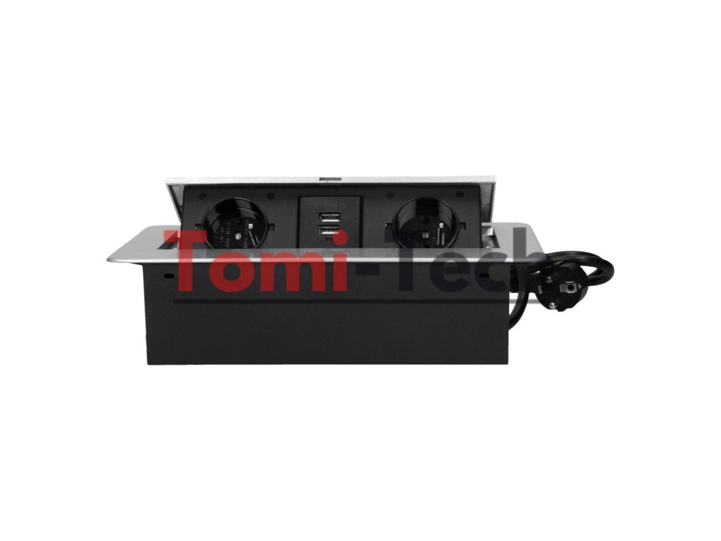 Nábytková zásuvka zapustená do kuchynskej linky s plochým frézovaným okrajom, USB nabíjačka a 3m kábel, 2x2P+Z, 2xUSB, striebornáDodatočné parametre