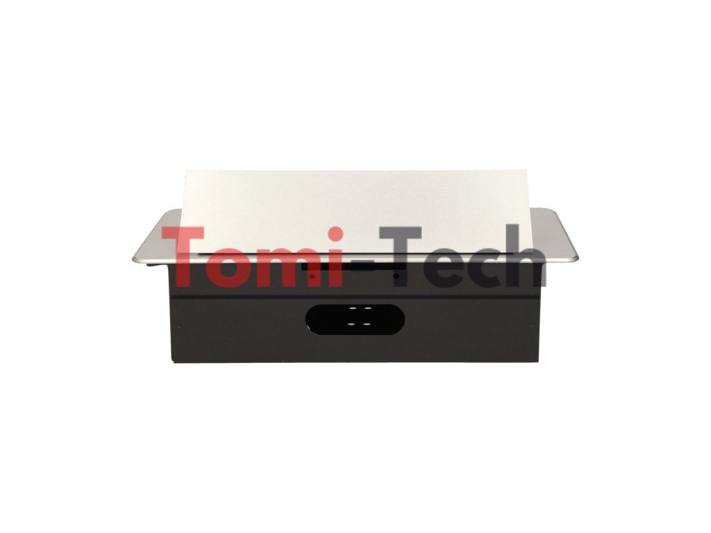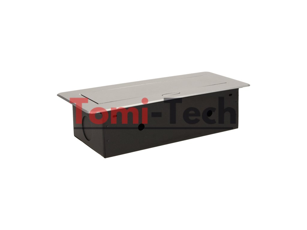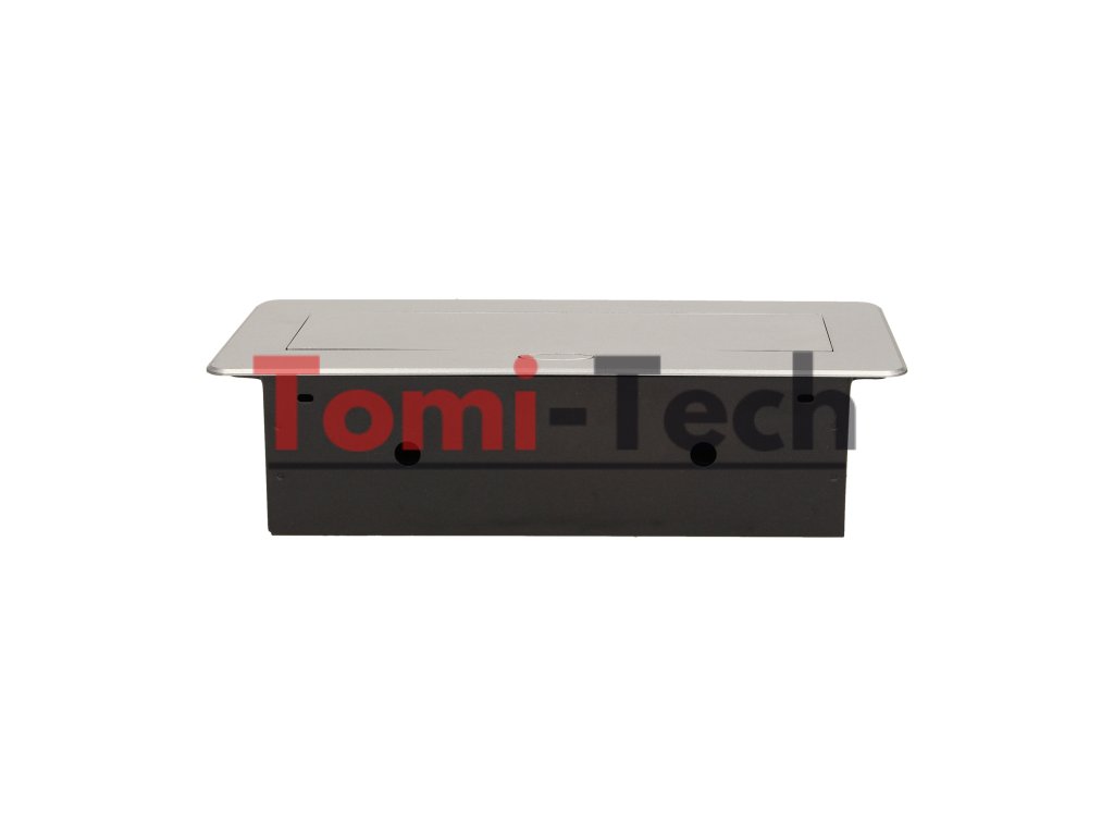 Nábytková zásuvka zapustená do pracovnej dosky s plochým frézovaným okrajom, 3x2P+Z, strieborná