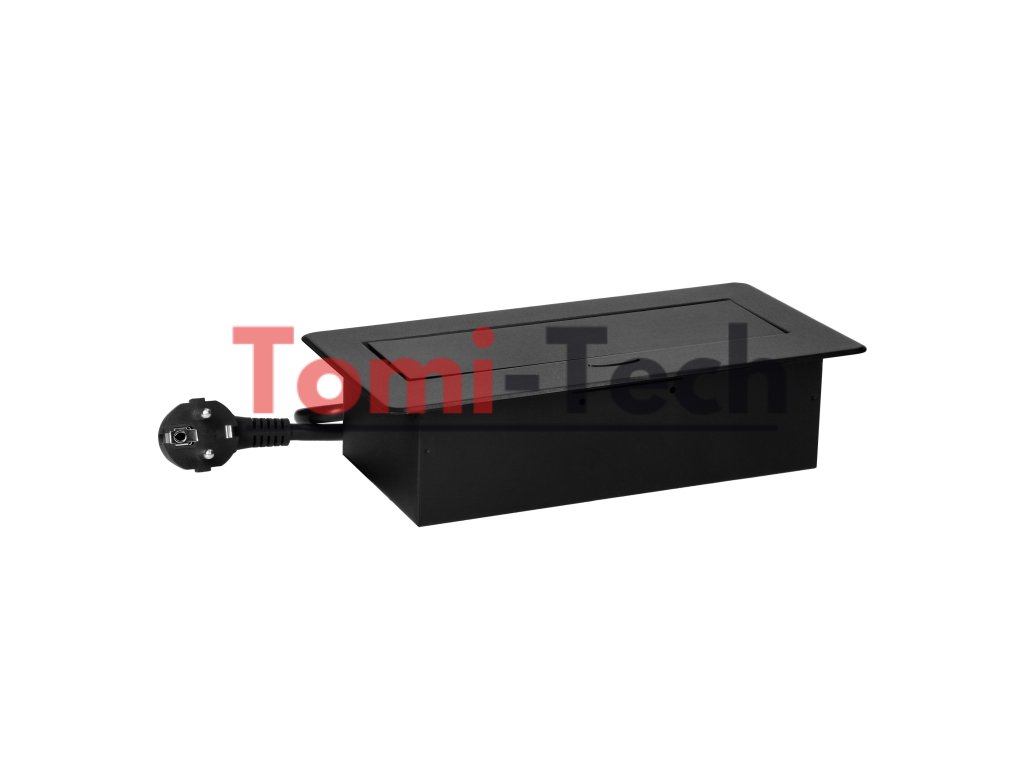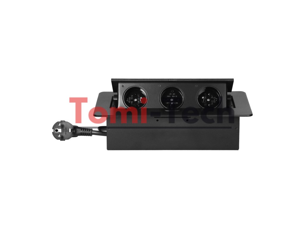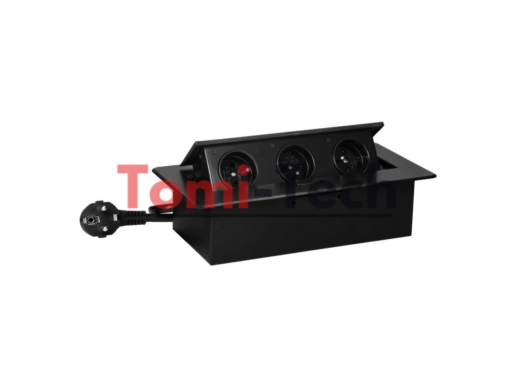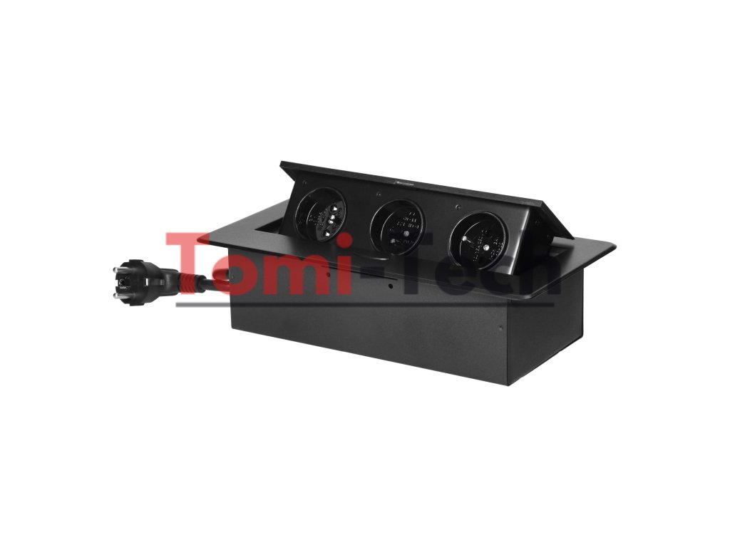 Nábytková zásuvka zapustená do pracovnej dosky s plochým frézovaným okrajom a 1,5 m káblom, 3x2P+Z, čierna