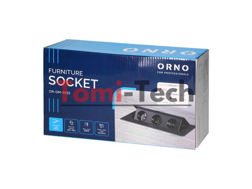 Nábytková zásuvka zapustená do pracovnej dosky s plochým frézovaným okrajom a 1,5 m káblom, 3x2P+Z, čiernaDodatočné parametre