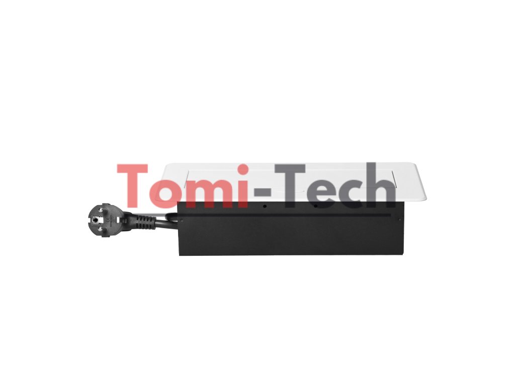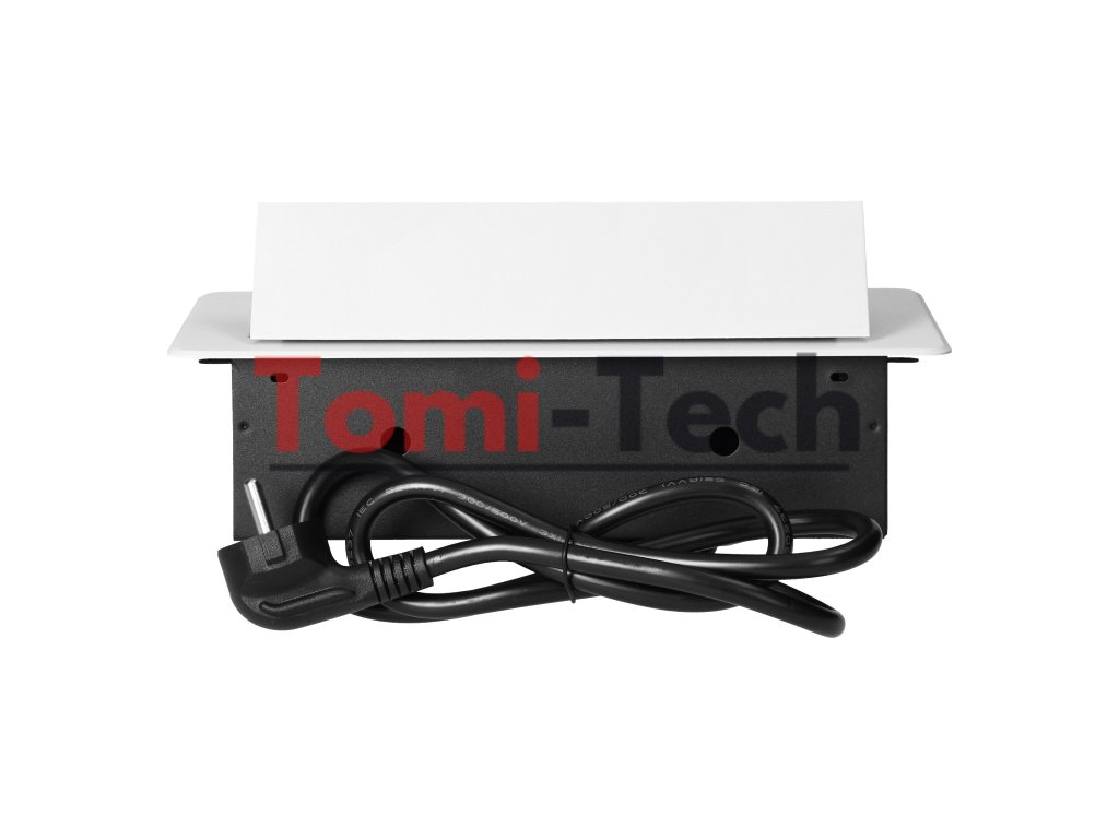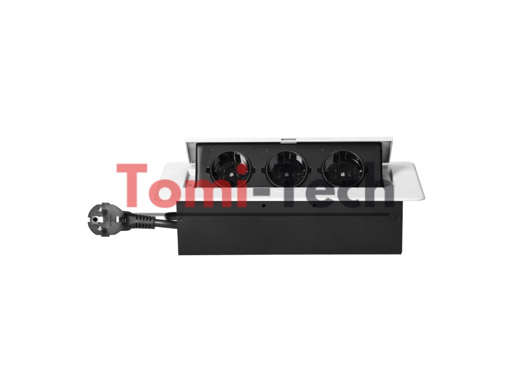 Nábytková zásuvka zapustená do pracovnej dosky s plochým frézovaným okrajom a 1,5 m káblom, 3x2P+Z (Schuko), biela