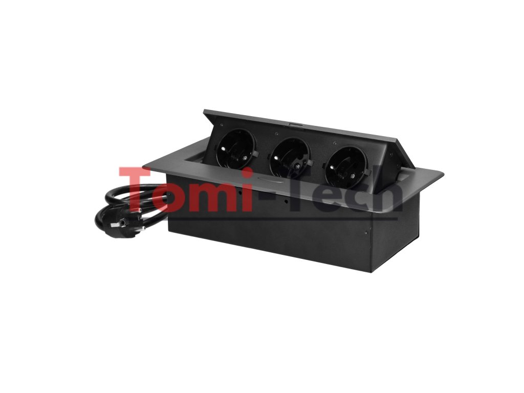 Nábytková zásuvka zapustená do pracovnej dosky s plochým frézovaným okrajom a 1,5 m káblom, 3x2P+Z (Schuko), grafitová