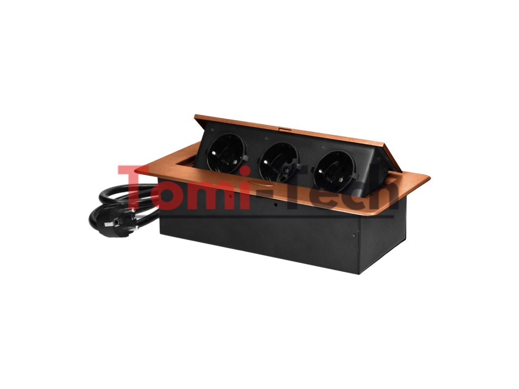 Nábytková zásuvka zapustená do kuchynskej linky s plochým frézovaným okrajom a 1,5 m káblom, 3x2P+Z (Schuko), zlatáDodatočné parametre