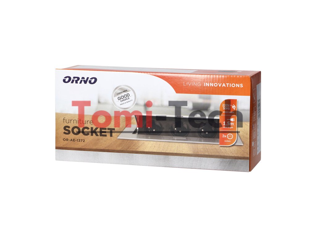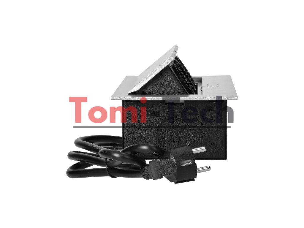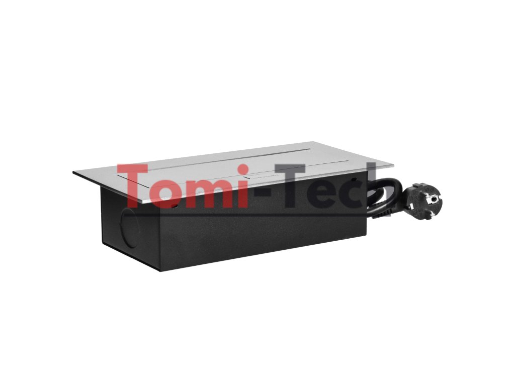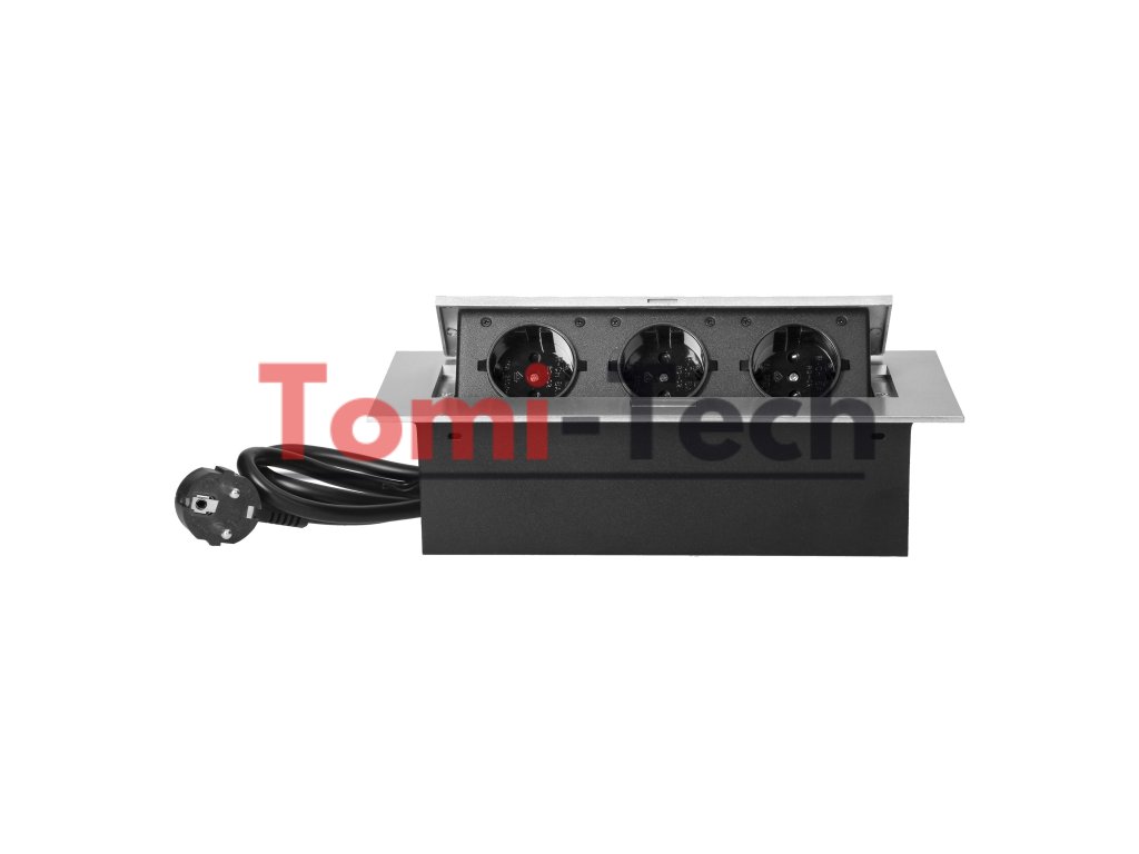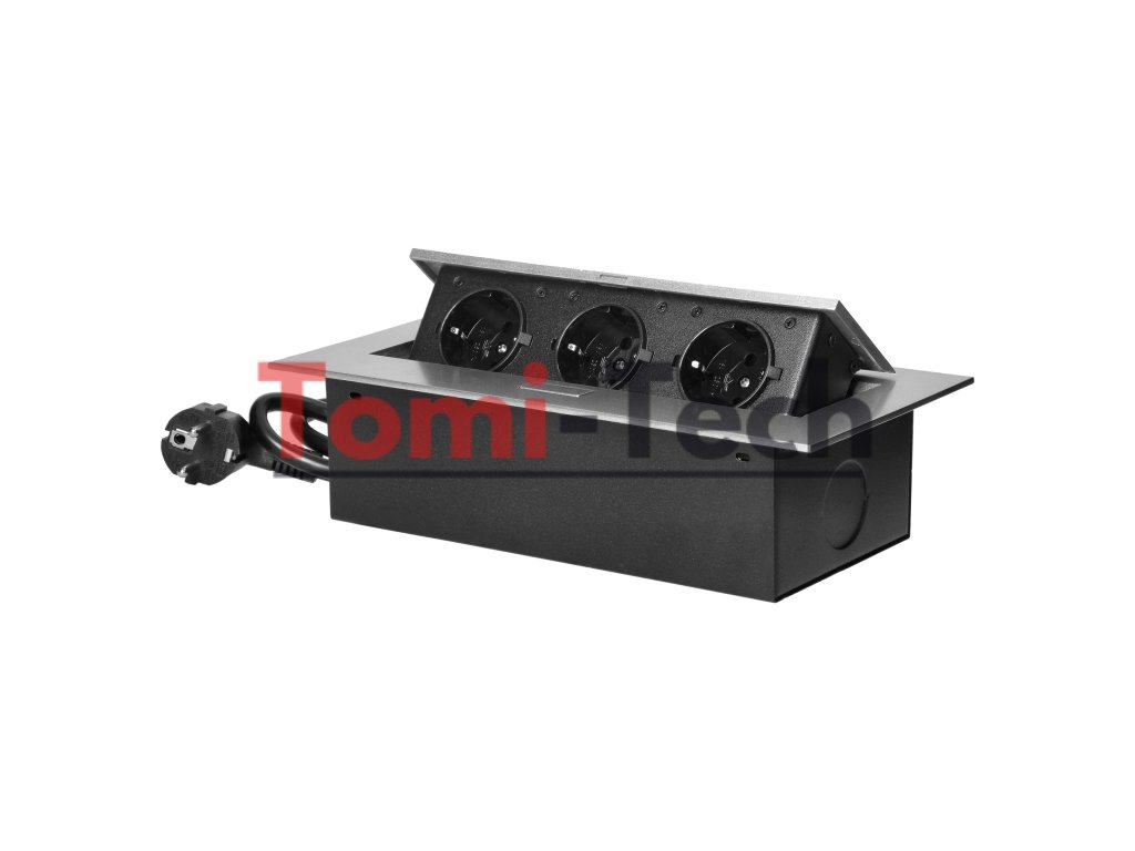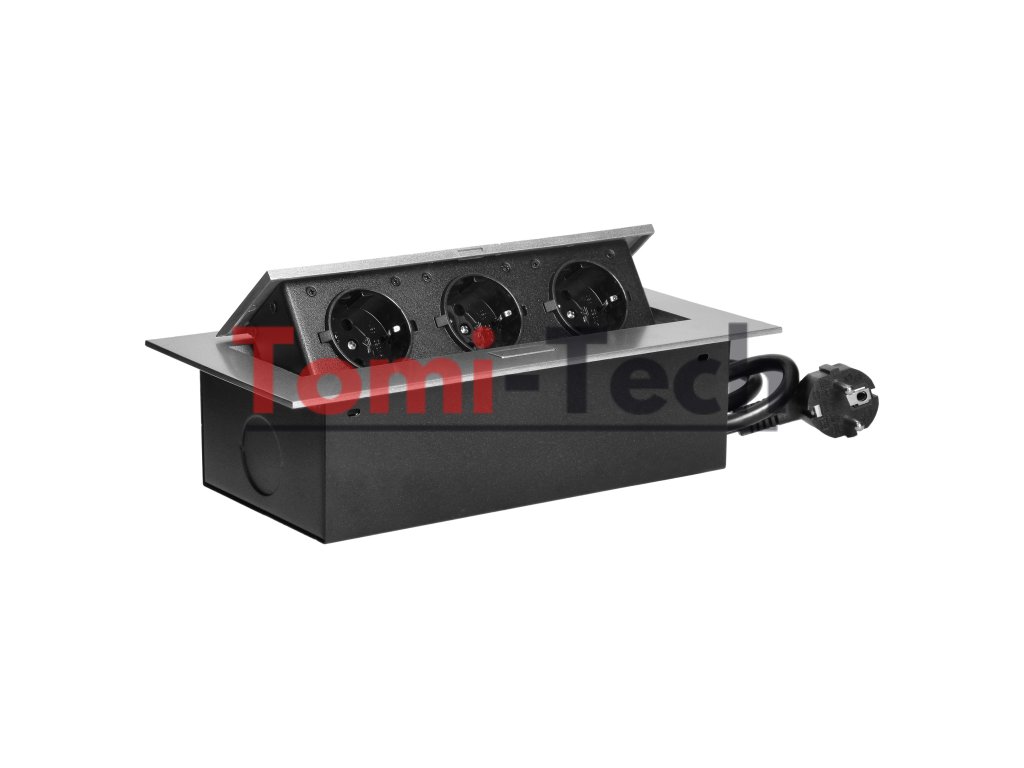 Nábytková zásuvka zapustená do pracovnej dosky s plochou hranou, 3 zásuvky 2P+Z (Schuko) a 1,5 m kábel (3x1,5 mm²), striebornáDodatočné parametre