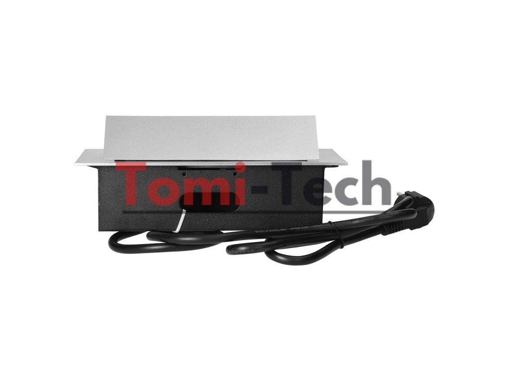 Nábytková zásuvka zapustená do pracovnej dosky s plochou hranou, 3 zásuvky 2P+Z (Schuko) a 1,5 m kábel (3x1,5 mm²), strieborná