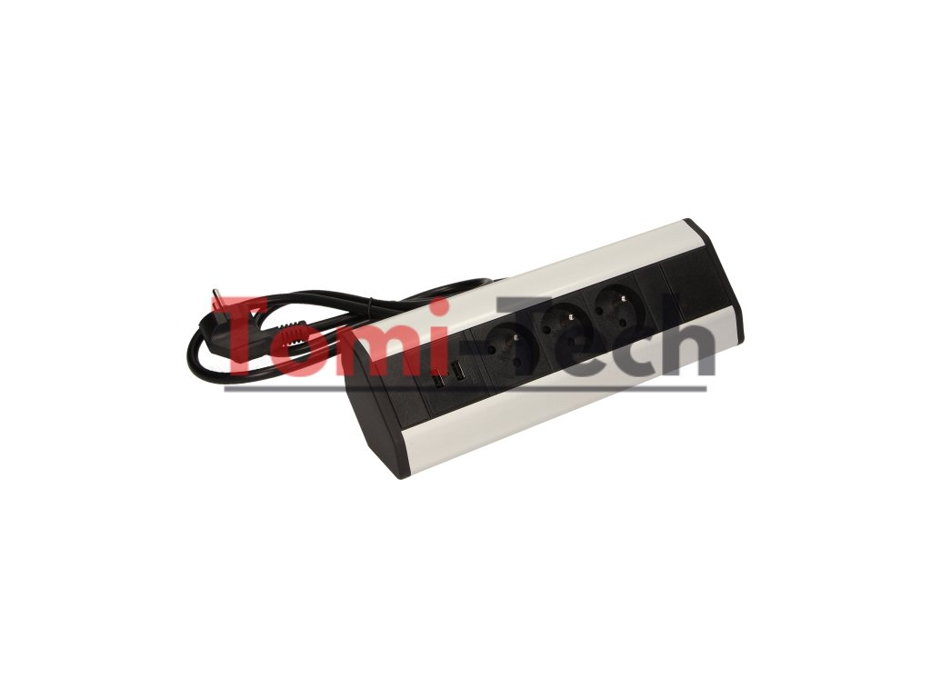 Sada troch uzemnených zásuviek s poistkami prúdového vedenia, kombinovaná s USB nabíjačkou, ideálna do kuchýň a kancelárií, na rovné povrchy a do rohov. Vybavená 1,8 m káblom.Dodatočné parametre