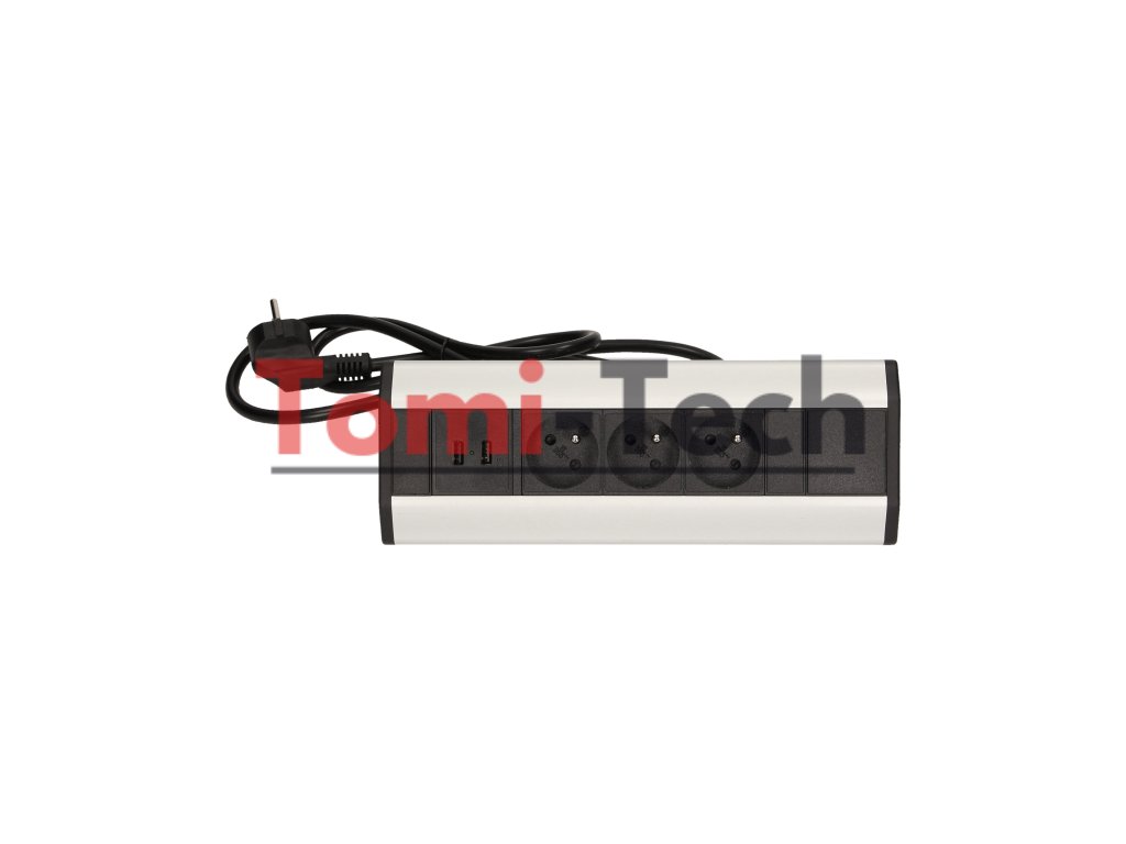 Nábytková zásuvka s USB nabíjačkou a 1,8 m káblom, 3x2P+Z, 2xUSB