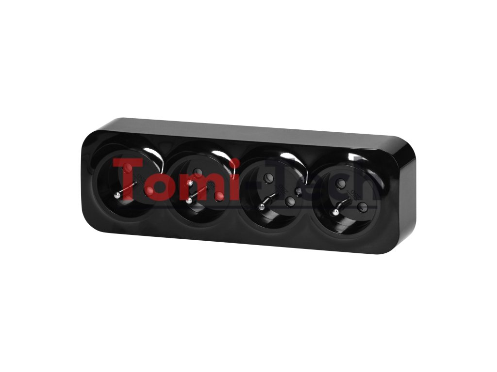 Štvornásobná zásuvka ToDo 2P+Z IP20, 16A, 230V AC, čierna, 8 kusov