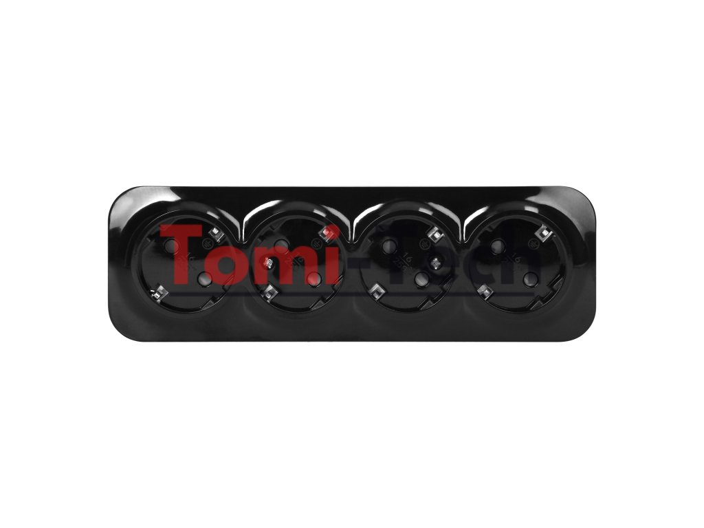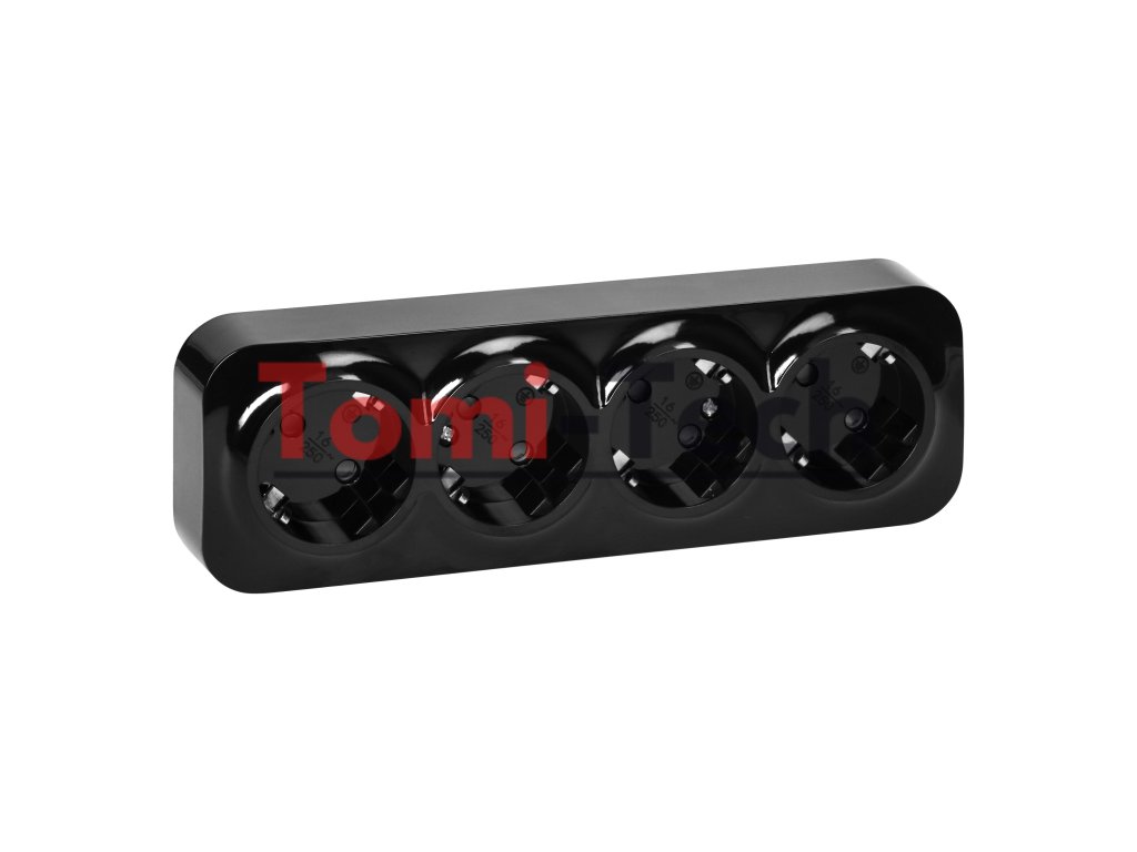 Štvornásobná zásuvka ToDo 2P+Z Schuko IP20, 16A, 230V AC, čierna, 8 kusov