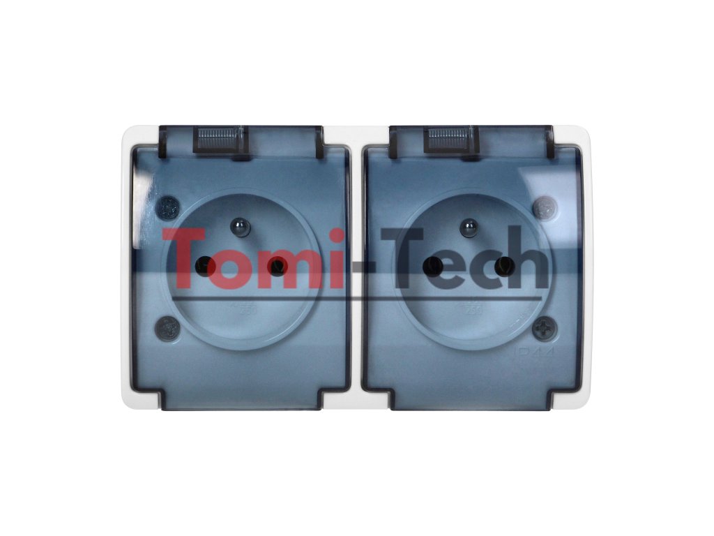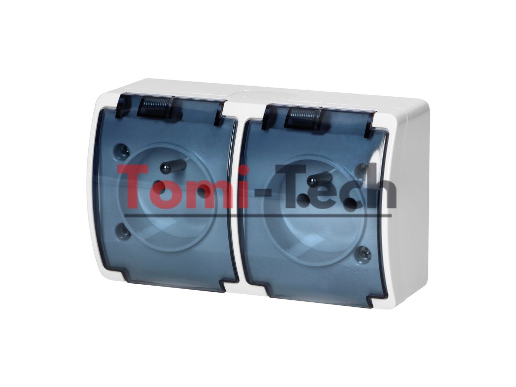 Dvojitá zásuvka 2x2P+Z AQUATIC, IP44, biela dymová