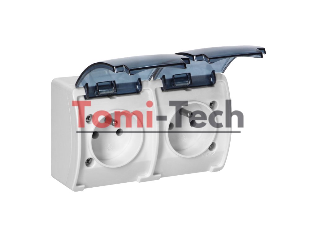 Dvojitá zásuvka 2x2P+Z AQUATIC, IP44, biela dymováDodatočné parametre