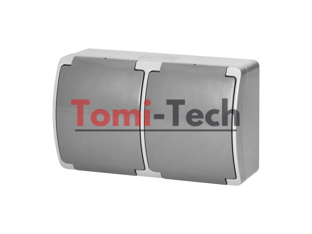 Dvojitá zásuvka 2x2P+Z AQUATIC, IP44, grafitovo sivá