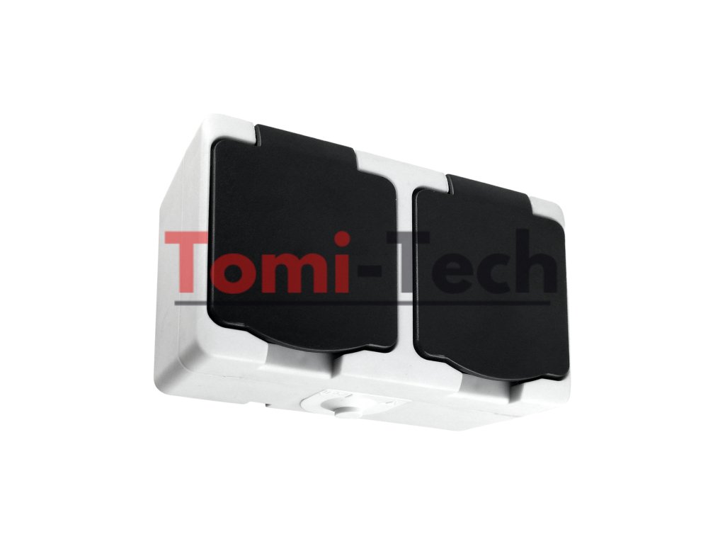 Dvojitá zásuvka 2X2P+Z AQUATIC MINI IP 54 Bielo-čierna, 5 kusov