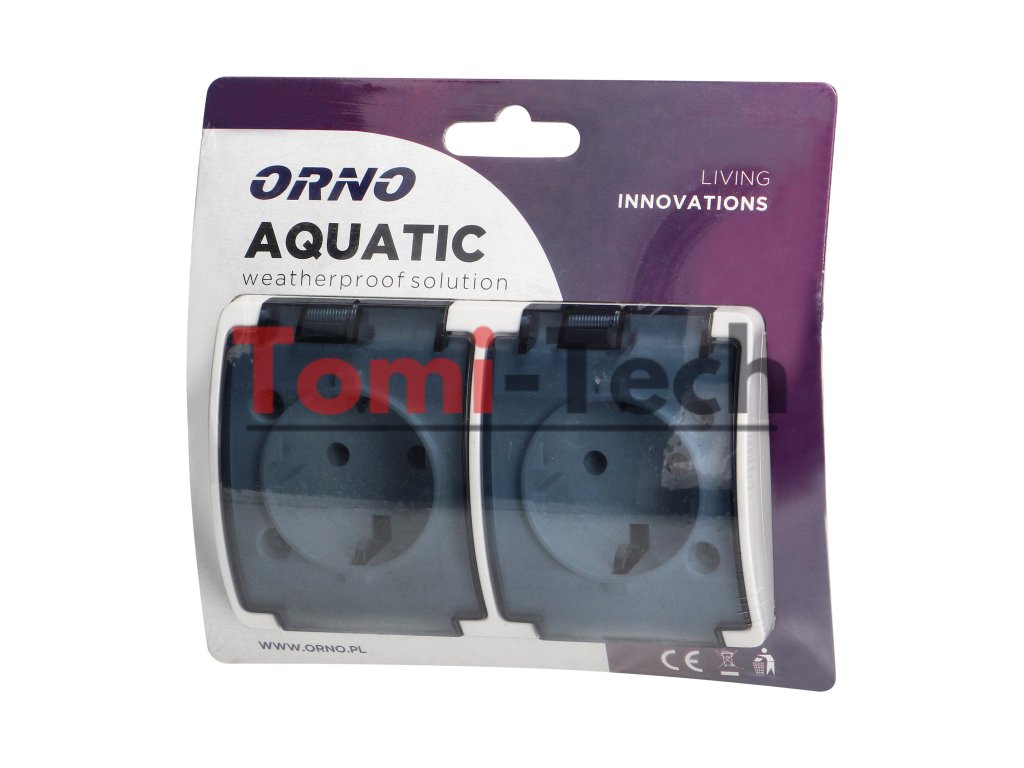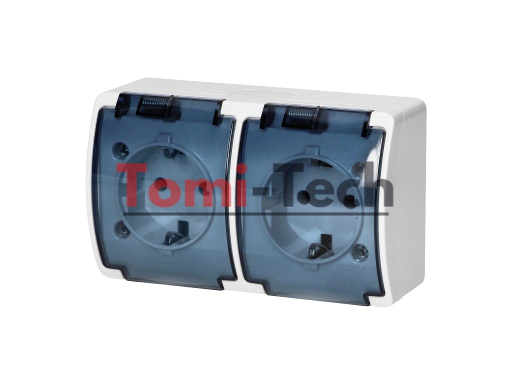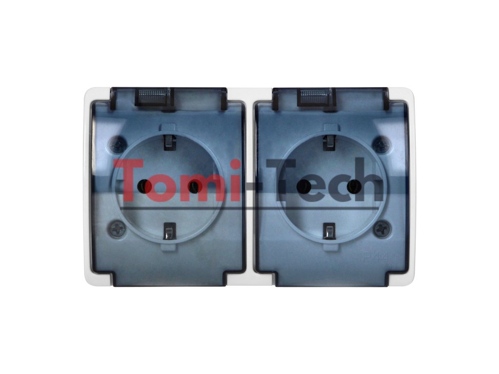 Dvojitá zásuvka 2x2P+Z Schuko AQUATIC, IP44, biela dymová