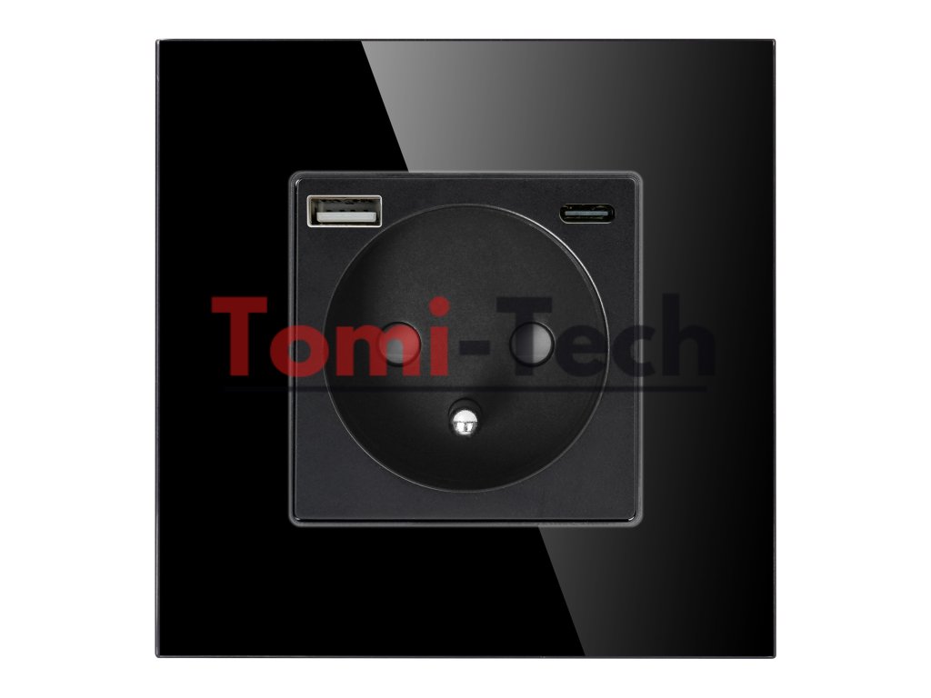 Jednoduchá zásuvka 2P+Z, USB-A + USB-C, PD, max. 20W, čiernaDodatočné parametre