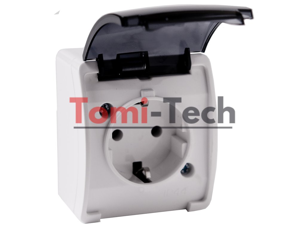 Jednoduchá zásuvka 2P+Z Schuko AQUATIC, IP44, biela dymová, 10 ks.
