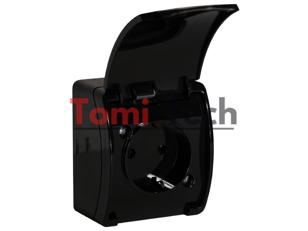 Jednoduchá zásuvka 2P+Z Schuko AQUATIC, IP44, čierna, 10 ks.