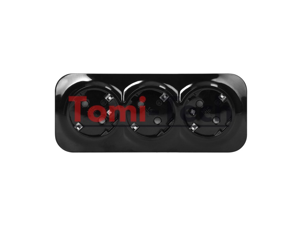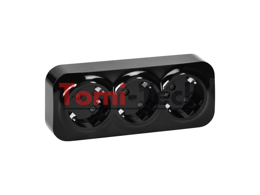 Trojitá zásuvka ToDo 2P+Z Schuko IP20, 16A, 230V AC, čierna, 10 kusov