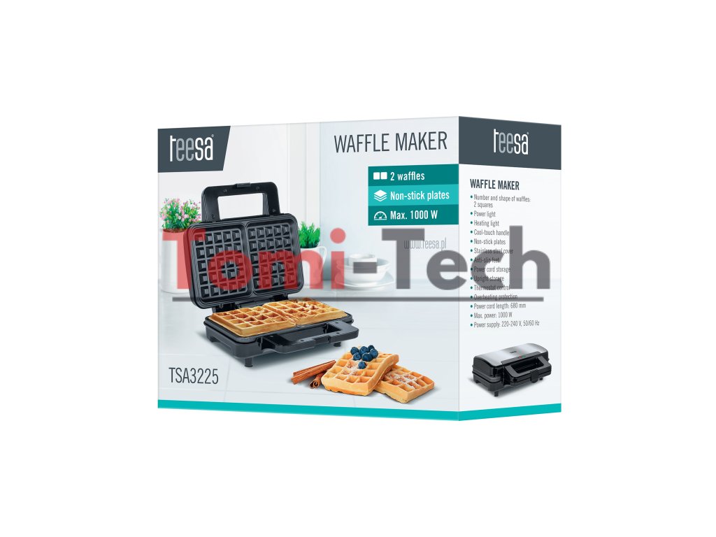 Mali ste nečakaných hostí alebo chcete potešiť seba a svojich blízkych? Teraz sa môžete vyhnúť kupovaným koláčom a rýchlo a jednoducho si pripraviť vlastný lahodný dezert. To je možné vďaka vaflovaču Teesa. Prístroj umožňuje pripraviť dve vafle súčasne a vďaka výkonu 1000 W sa zohreje raz-dva. To znamená, že si budete môcť veľmi rýchlo pripraviť veľké množstvo tejto obľúbenej pochúťky.