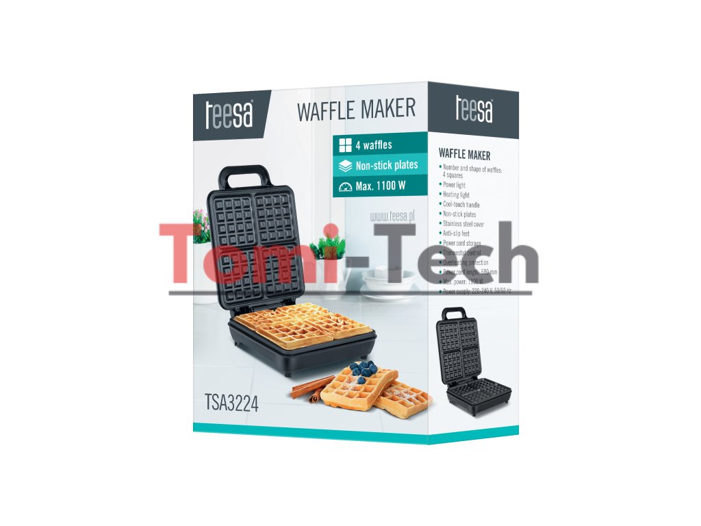 Radi prekvapujete svojich blízkych lahodnými pochúťkami? Máme pre vás zariadenie, ktoré ešte viac rozmaznáva ich chuťové poháriky. Vaflovač Teesa s výkonným výkonom 1100 W vám umožňuje pripraviť až štyri vafle súčasne. Indikátor pripravenosti na použitie a teflónový povlak na platniach, ktorý chráni cesto pred prilepením, robia prípravu lahodných dobrôt s vaflovačom Teesa jednoduchou, rýchlou a neuveriteľne príjemnou. Dokonale upečené, chrumkavé cesto jednoducho ozdobte práškovým cukrom alebo šľahačkou a ovocím a vychutnajte si túto lahodnú pochúťku. Radi máte svojich blízkych pri kuchynských experimentoch? S vaflovačom Teesa môžete spoločne pripravovať lahodné maškrty. Zariadenie je bezpečné na každodenné používanie. Má protišmykové nožičky a ochranu proti prehriatiu. Navyše, veko vaflovača z nehrdzavejúcej ocele je vybavené rukoväťou, ktorá zostáva chladná. To znamená, že k kulinárskej zábave môžete pozvať aj svoje deti.