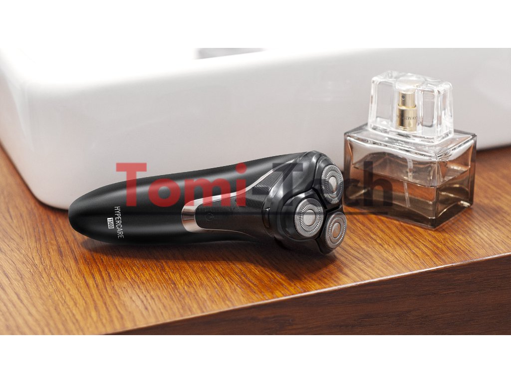 Rotačný holiaci strojček HYPERCARE T300 je vybavený tromi flexibilnými čepeľami z nehrdzavejúcej ocele. Vďaka špeciálnej konštrukcii a rýchlosti až 7200 otáčok za minútu si zariadenie ľahko poradí s akoukoľvek bradou.