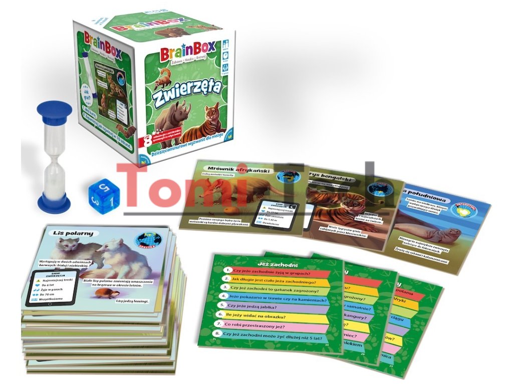 Objavte tajomstvá tvorov z celého sveta s BrainBox - Zvieratá! 54 kariet obsahuje informácie o všetkom od nadýchaných činčil až po revúce levy a tigre a pútavá hrateľnosť pomôže vášmu dieťaťu bez námahy rozšíriť si vedomosti!