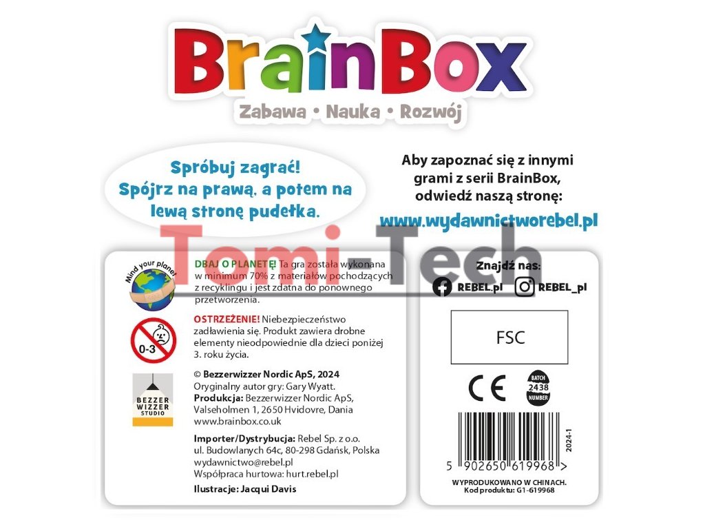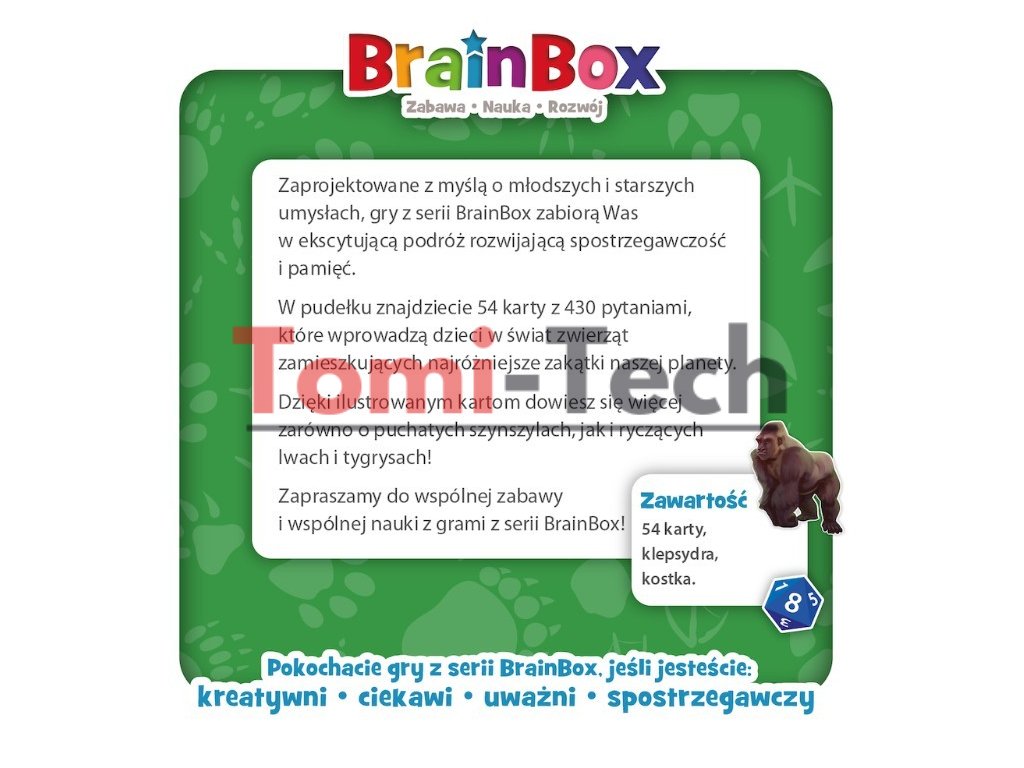 Toto je séria unikátnych vzdelávacích hier, ktoré podporia rozvoj vašich detí alebo študentov v každej fáze učenia. Hry BrainBox vám umožňujú rozšíriť si vedomosti a tiež podporiť tréning pamäte a pozorovacích schopností, ktoré sú kľúčové pre rozvoj.