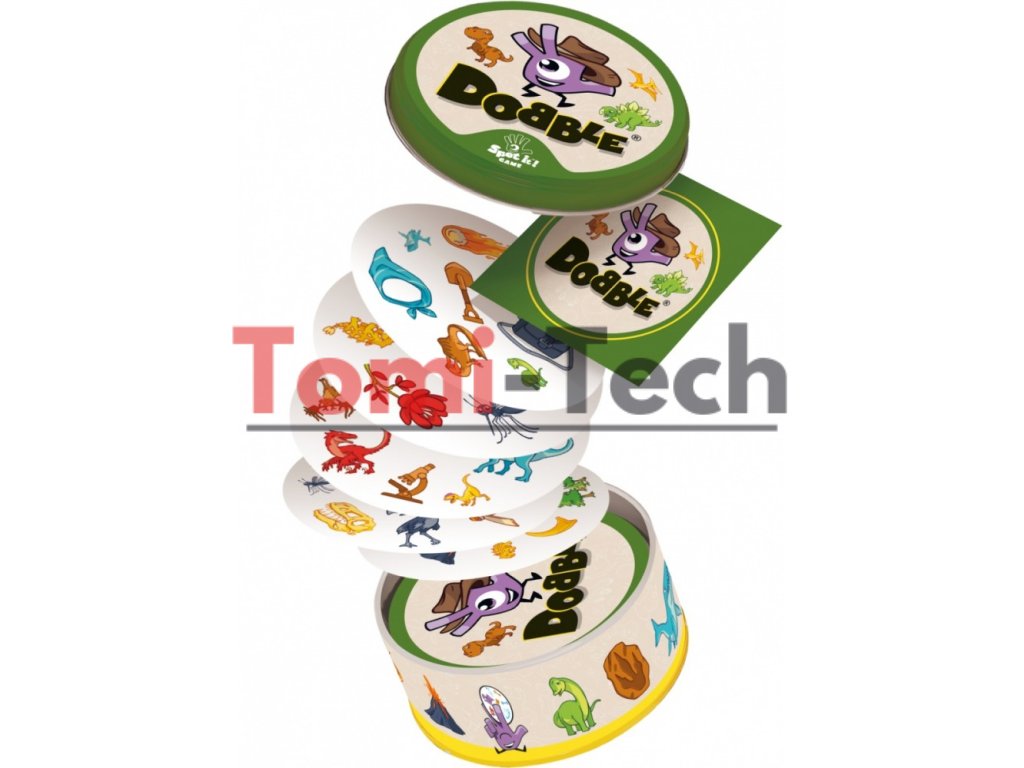 Dobble Dinosaurs je hra, ktorá podporuje tréning pozorovania a rýchlosti reakcií, plne prispôsobená potrebám najmenších. Sada obsahuje 55 kariet s najobľúbenejšími dinosaurami a inými prehistorickými zvieratami a predmetmi spojenými s vykopávkami. Živé, farebné obrázky sa ľahko pomenúvajú, takže môžeme pozvať deti od 4 rokov, aby sa zahrali.