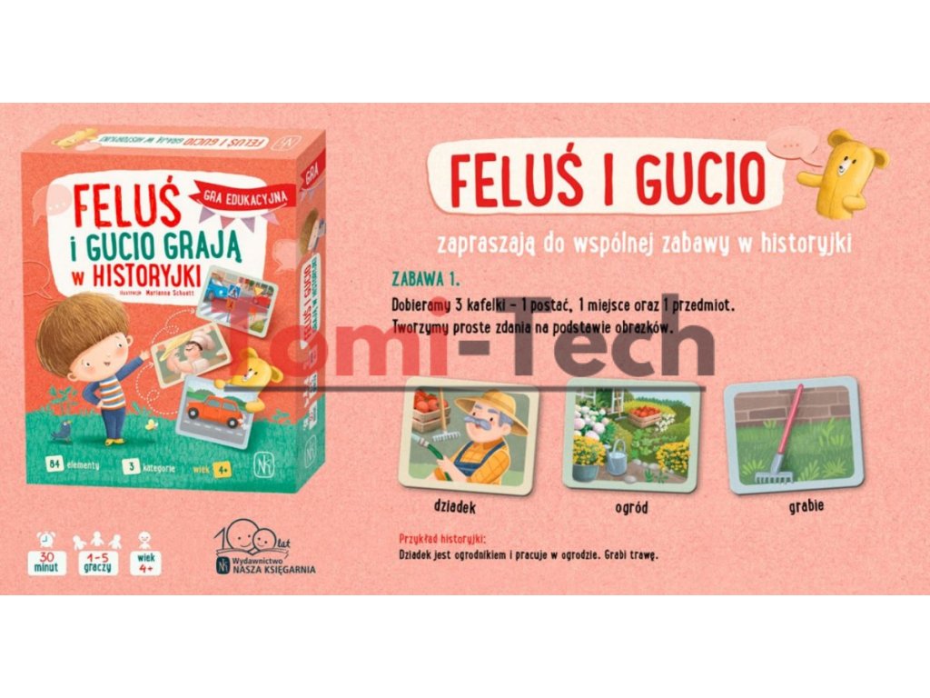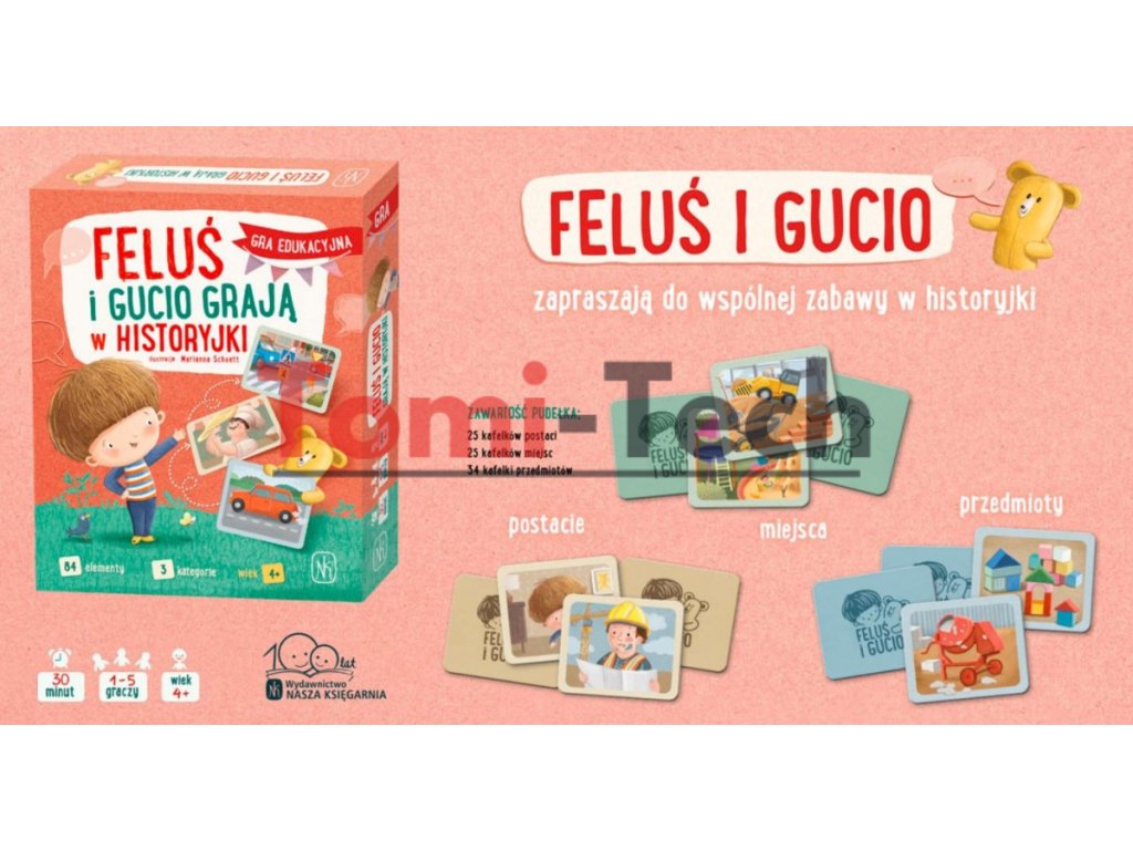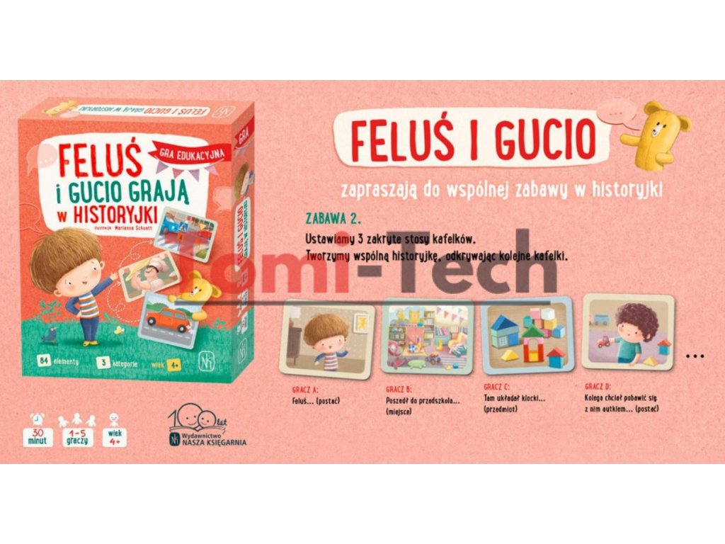 Feluś a Gucio vás pozývajú hrať už tretíkrát! Tentoraz je témou spoločné rozprávanie príbehov. Hra pomôže deťom nielen vytvárať príčinno-následkové vzťahy, ale aj obohatí ich predstavivosť a uľahčí verbálnu komunikáciu.