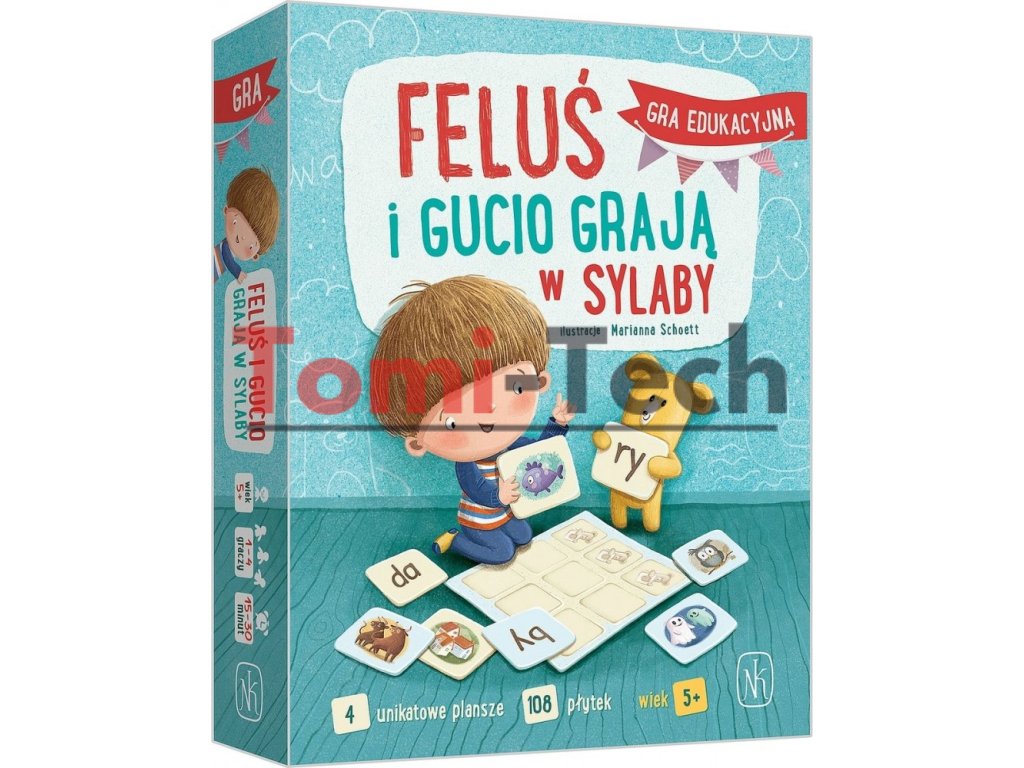Feluś a Gucio vás pozývajú, aby ste sa pridali k zábave s aranžovaním slabík! Táto vzdelávacia hra, krásne ilustrovaná Mariannou Schoett, vám umožňuje vytvárať dvoj- a trojslabičné slová a varianty opísané v návode menia hrateľnosť, vďaka čomu je každá z nich jedinečným zážitkom.