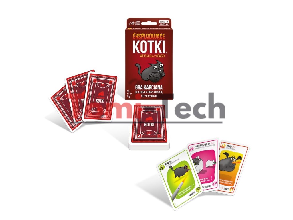 Vyskúšajte si túto vysoko strategickú a úplne bezpečnú verziu ruskej rulety! Počas hry si hráči v každom kole ťahajú jednu kartu, kým jeden z nich nepristane na nadýchanej bombe. Táto nešťastná bytosť sa rozbije na tisíc kúskov a je vyradená z hry. Zostávajúce karty sa používajú na vyhýbanie sa explodujúcim mačiatkam alebo na upokojenie ich výbušnej povahy.