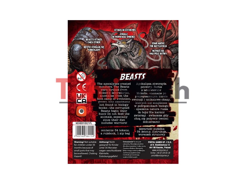 Beasts je nové rozšírenie pre Neuroshima Hex 3.0, ikonickú strategickú stolovú hru zasadenú do sveta Neuroshima. Tentoraz sa k obrovskej horde frakcií pridávajú Beasts, divé, zmutované zvieratá, ktoré Moloch navrhol, aby zničili ľudstvo.