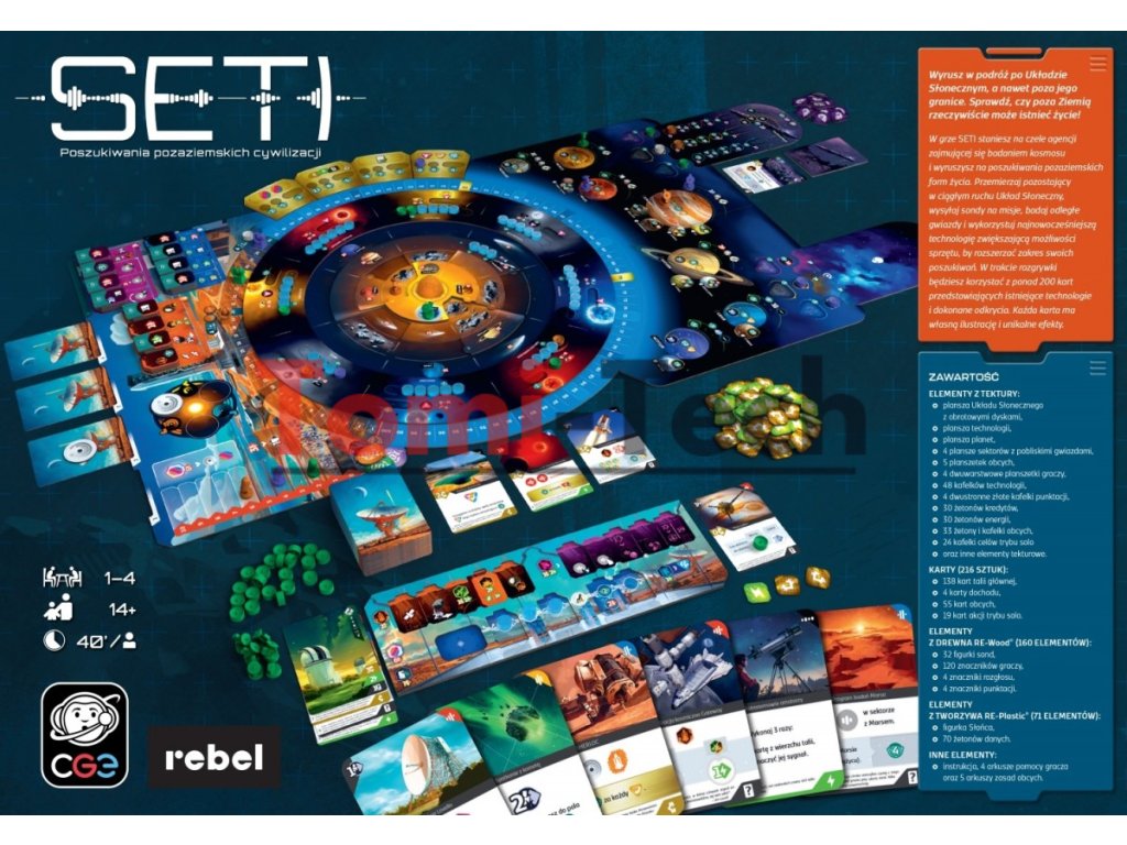 Staňte sa jedným z lídrov vo výskume vesmíru a využívajte špičkové technológie na návštevu iných planét, štúdium vzdialených hviezd a rozvíjanie svojich schopností! SETI: Hľadanie mimozemských civilizácií je komplexná expertná hra s viac ako 200 unikátnymi technologickými kartami založenými na reálnej vede a množstvom funkcií, ktoré vám pomôžu objaviť nové možnosti a cesty k víťazstvu v každej hre.