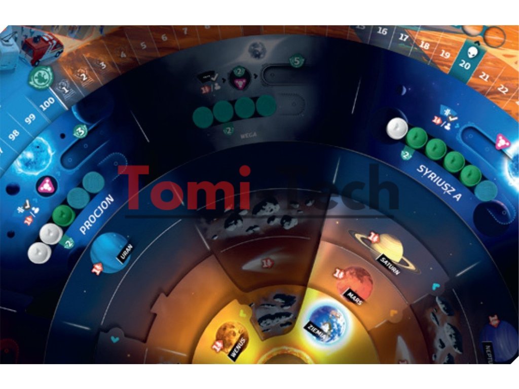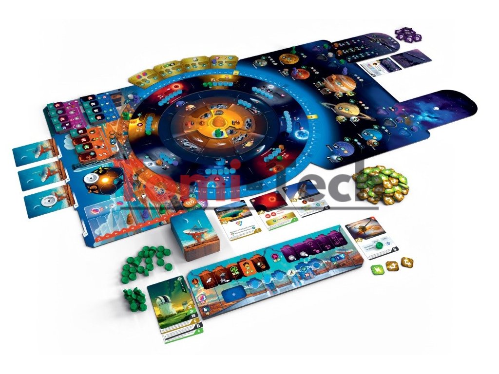 - SETI ponúka množstvo variabilných prvkov a prekvapení a každá hra vám umožňuje vyskúšať si nové stratégie. Nielenže výber kariet je náhodný, ale aj ciele na bodovacích dlaždiciach a počiatočná pozícia diskov na hracej doske slnečnej sústavy, takže každá hra začína inak.