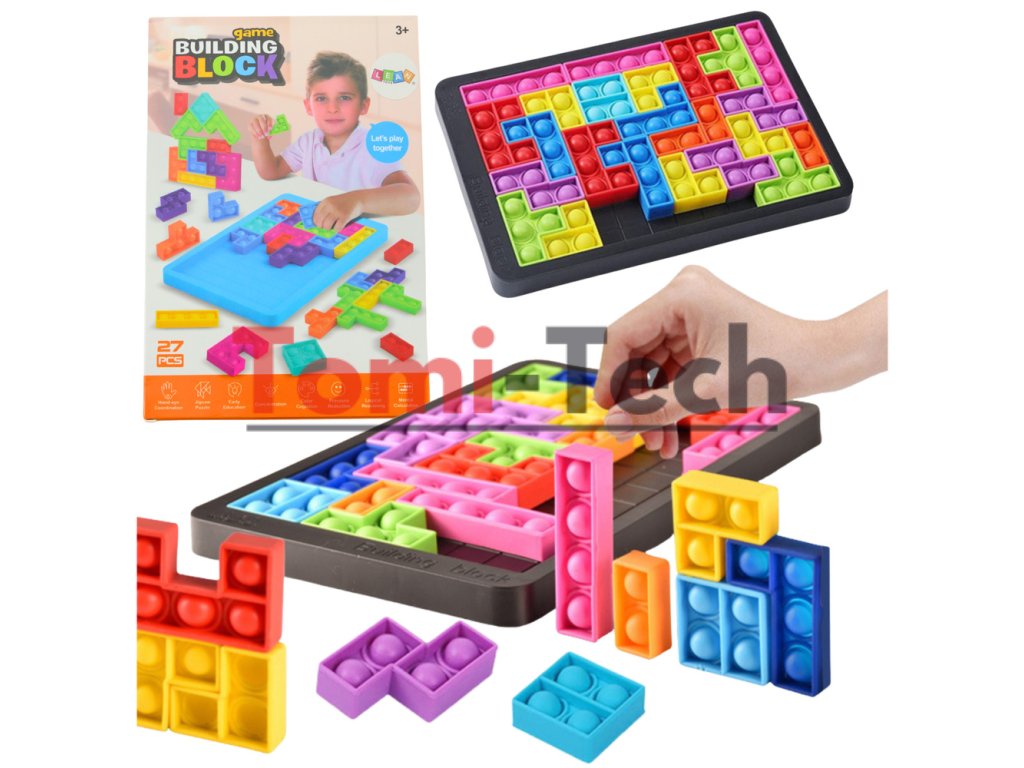 Tetris Pop-It hra Puzzle 3v1 senzorické farebné 27 dielikov