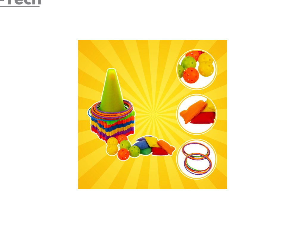 - množstvo príslušenstva v balení ? 6 kužeľov, obručí, lôpt a gymnastických vriec v živých farbách priťahuje pozornosť detí